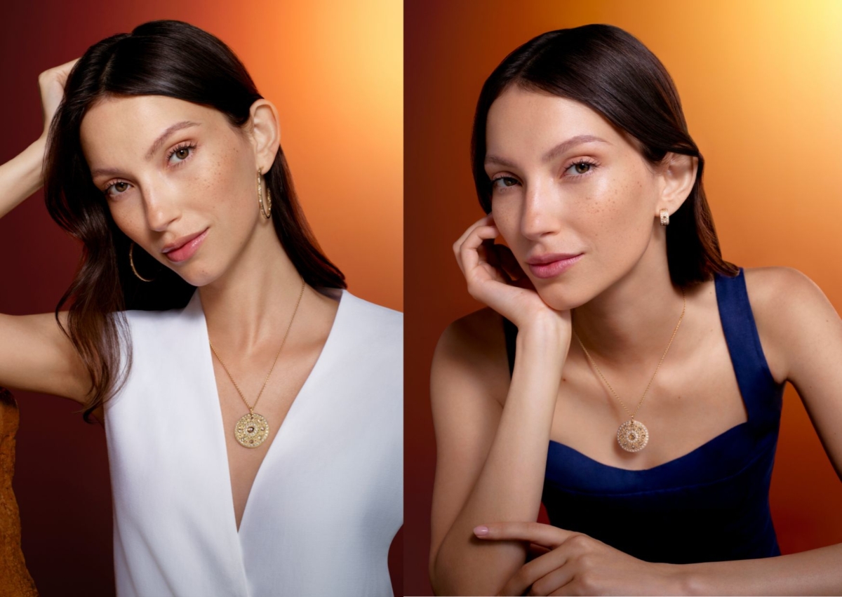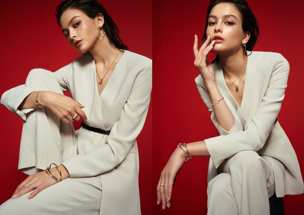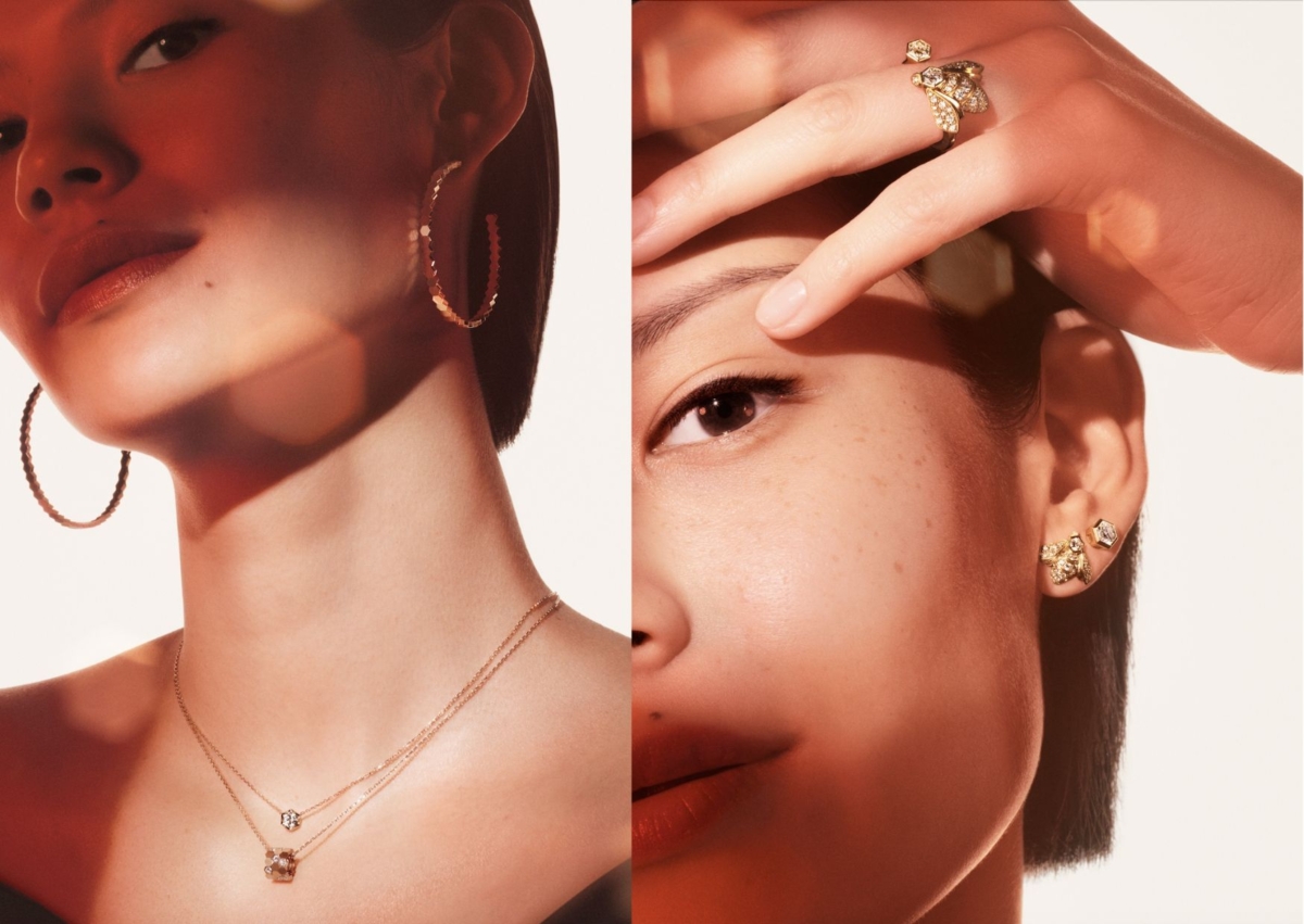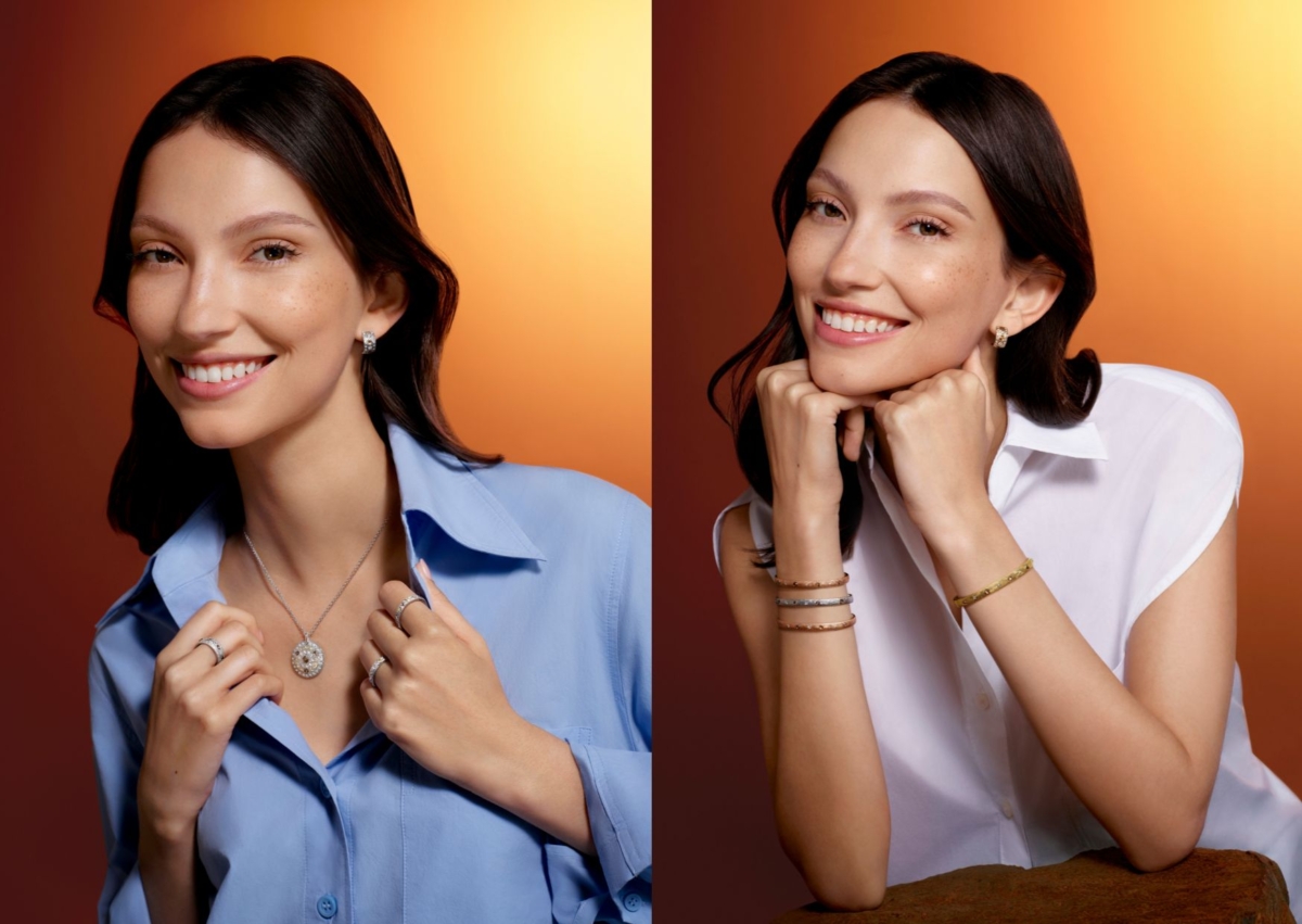 美國鑽石品牌 Hearts On Fire 以耀眼火光的完美車工鑽石享譽全球,在這次的新年形象中,Hearts On Fire 呈獻 VELA 系列以表達珍愛自我的精神,再搭配以美鑽演繹破曉時分晶瑩露珠的 LU 系列,傳遞美好寓意照亮佳節,模特兒穿著簡約優雅,並透過幾件鑽石首飾的點綴,造型氛圍即刻亮眼起來,迎來完美運勢的新氣象。