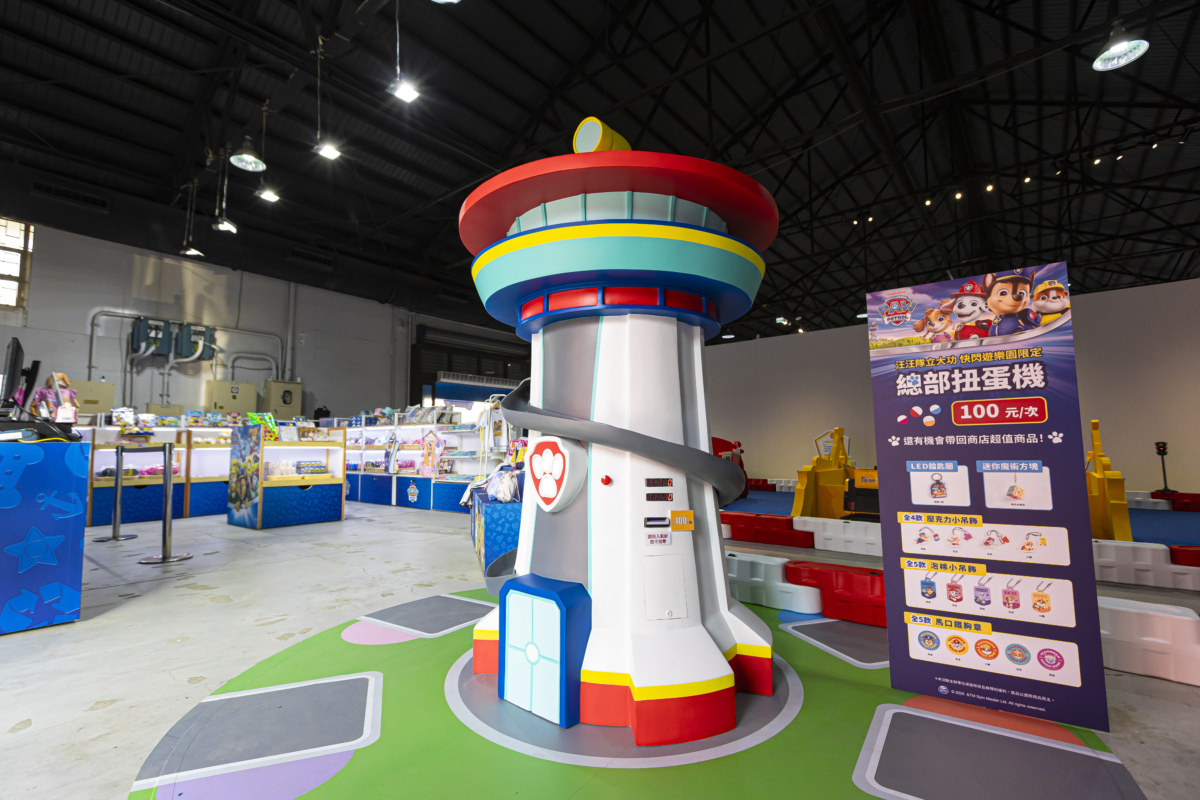 本次店內還設有2.3米高的巨型汪汪隊總部扭蛋機,全台首次亮相,不僅是全家人拍照打卡的亮點,還讓扭蛋體驗變得更加有趣。按下總部扭蛋機的啟動按鈕,驚喜將會沿著總部軌道滾下,挑戰者們將有機會帶走超值好禮,讓孩子們親手體驗,把屬於自己的驚喜帶回家。