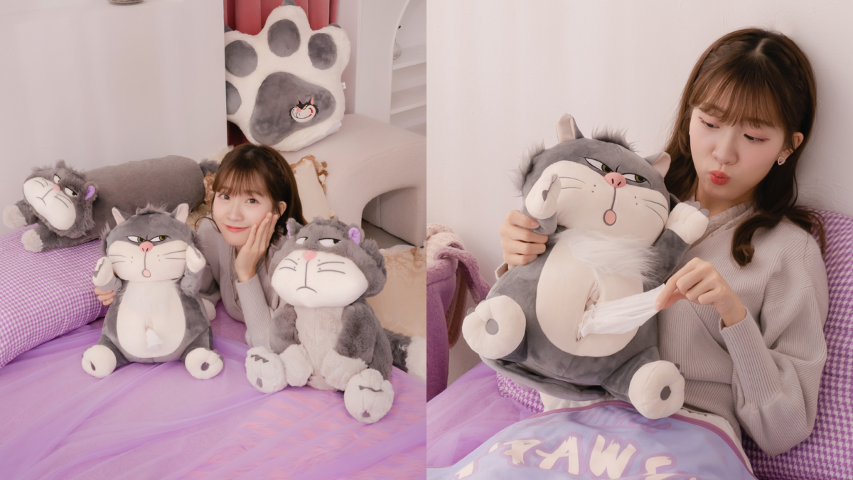 這次主打魯斯佛玩偶面紙套,超大魯斯佛露出有趣的小表情,肥肥的肚子中間可以放入衛生紙抽出~柔軟的材質當作娃娃抱著也是居家、辦公室陪伴好物♡喜歡毛茸茸款的朋友不用擔心~16吋毛茸茸的坐姿魯斯佛抱起來超滿足,天冷時把手伸進大貓爪中讓魯斯佛溫暖你~