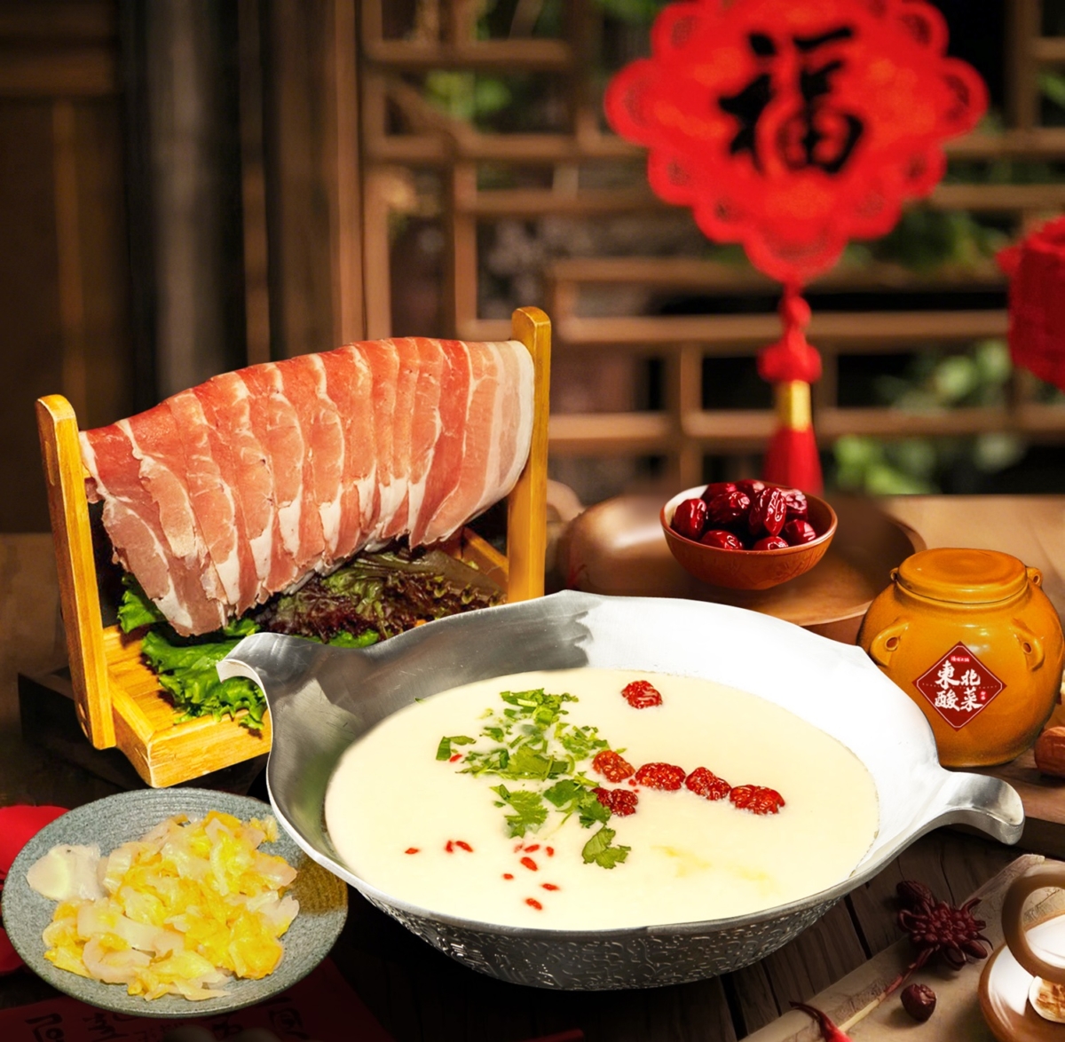 - 古法燉煮工藝:以280度高溫炙燒豬骨,搭配6種蔬菜慢火熬煮8小時,湯底醇厚不油膩,酸菜的鮮香與白肉的細膩交織出絕美風味,讓人一口驚豔,從口暖到心!