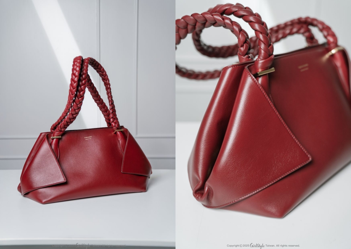 「酒紅色」精品包:Ferragamo Scarf 手提包,NT$ 123,000