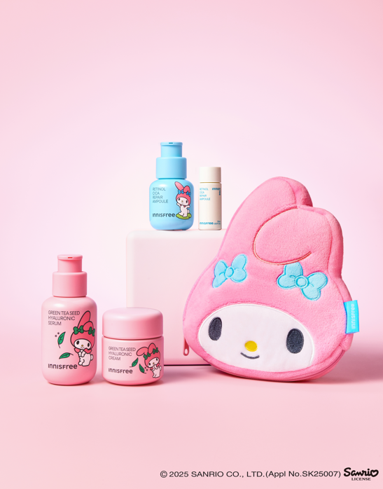 為慶祝 INNISFREE成立25週年,特別攜手今年也剛好50週年的美樂蒂將明星商品「綠茶籽玻尿酸保濕精華」、「綠茶籽玻尿酸保濕霜」以及「A 醇淨膚超修護安瓶」通通換上美樂蒂限量版聯名包裝,三麗鷗粉一定要收,讓保養時刻療癒又開心!