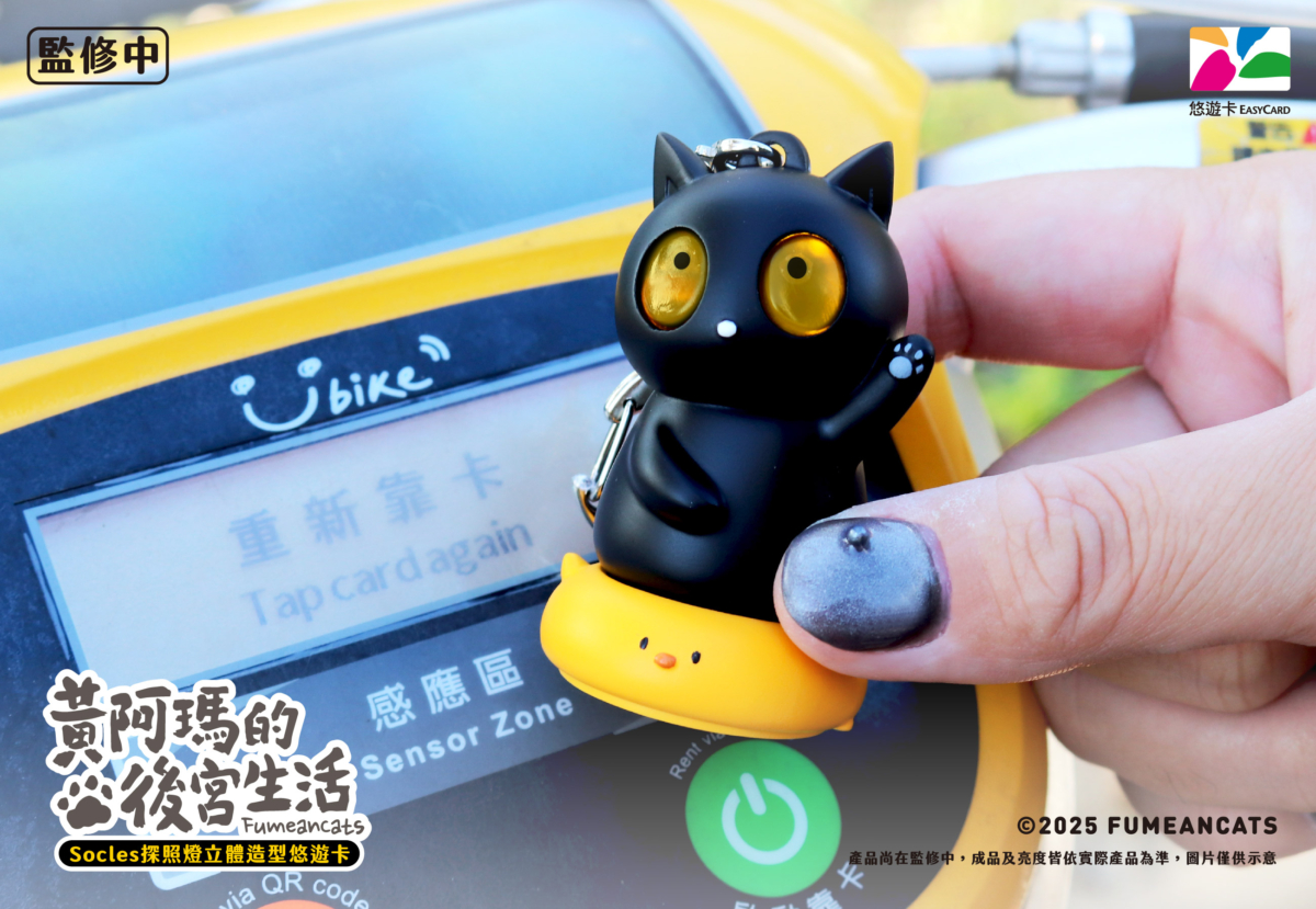 全台貓奴看過來!「黃阿瑪的後宮生活」再度推出超萌立體造型悠遊卡!繼先前黃阿瑪系列悠遊卡大獲好評後, 2025年「黑貓界大明星」Socles 的首款「探照燈立體造型悠遊卡」全新登場,延續粉絲對「黃阿瑪的後宮生活」貓咪成員的熱愛,讓粉絲再度解囊收養。 這款悠遊卡完美融合了黑貓的幸運象徵與 Socles 的明星氣場,舉手造型搭配嗶卡時眼睛閃亮發光的設計,不僅可愛十足,更充滿幸運與幸福的寓意。對黑貓迷與貓奴來說,這款療癒小物絕對是今年不可錯過的必收品,快讓 Socles 陪你一起點亮日常生活吧!
