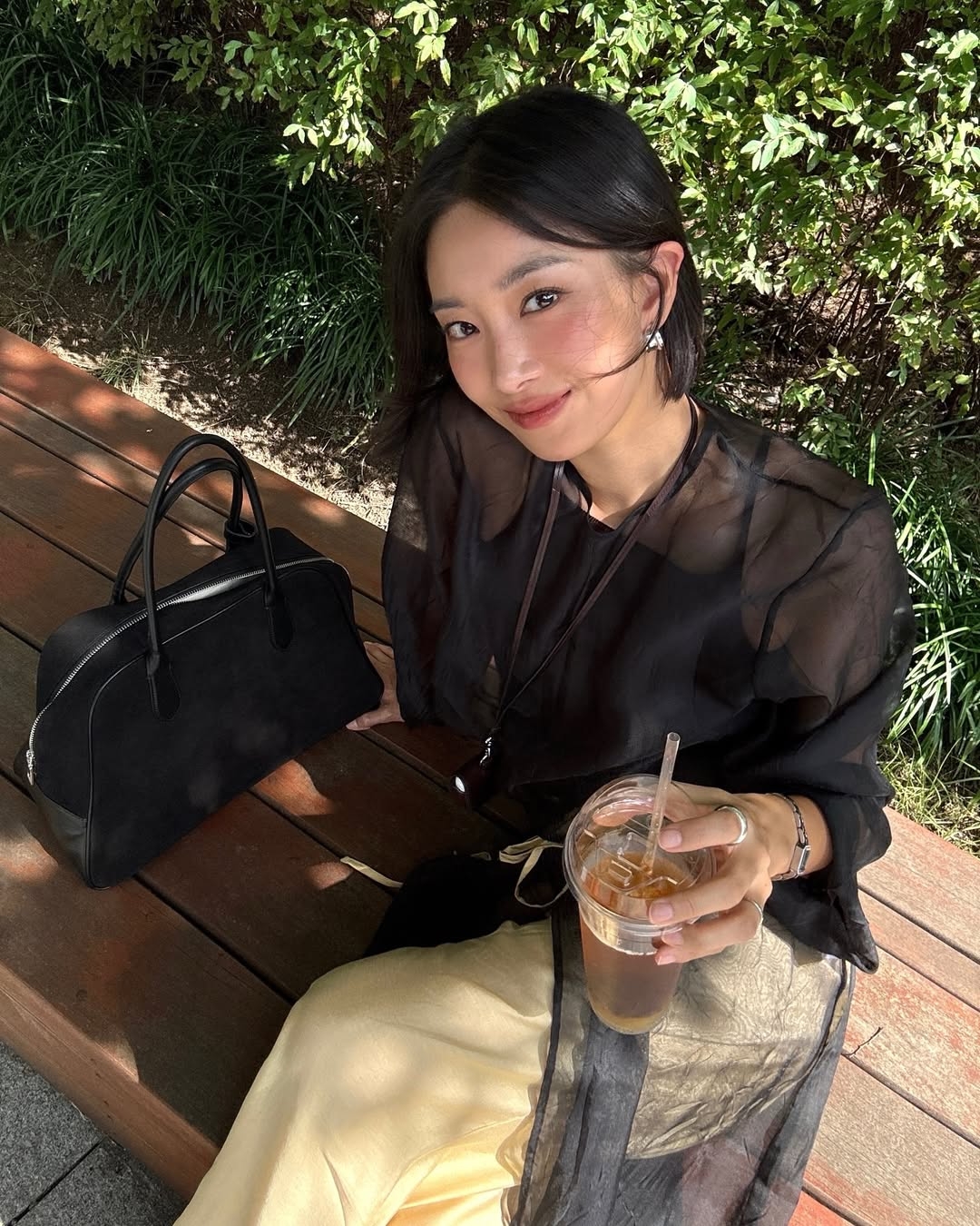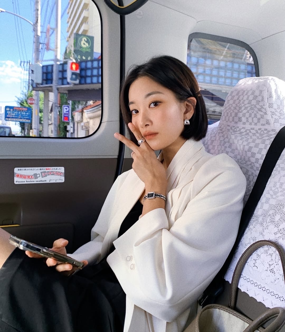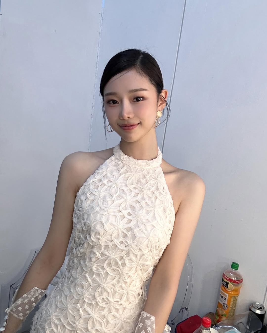 丸子頭可以說是與韓系鬢角的絕配髮型,不僅充滿俏皮感,將頭髮收得乾淨也能更突出鬢角的精緻線條。這款造型不論是休閒日常,或是像時安身穿白色小禮服的正式場合都很適合,輕鬆營造清新脫俗的氛圍。