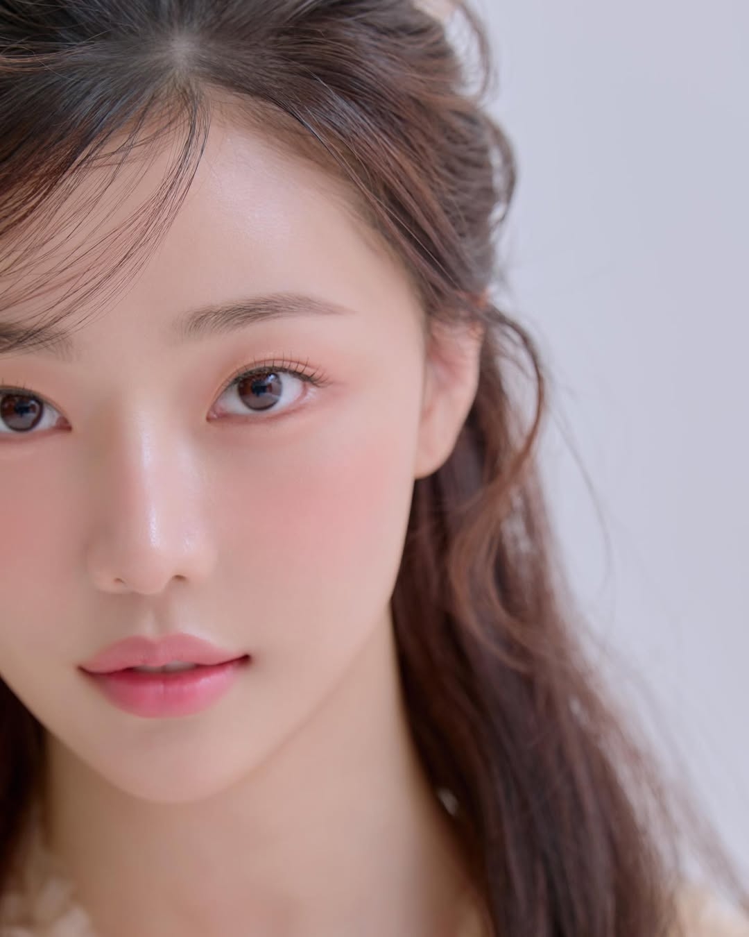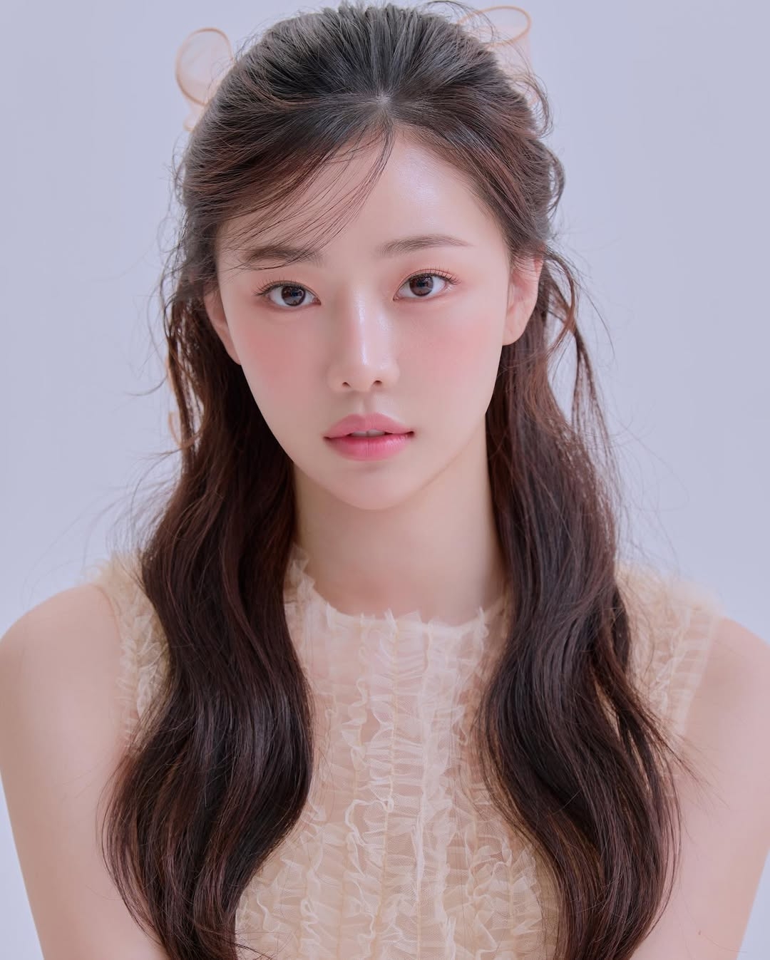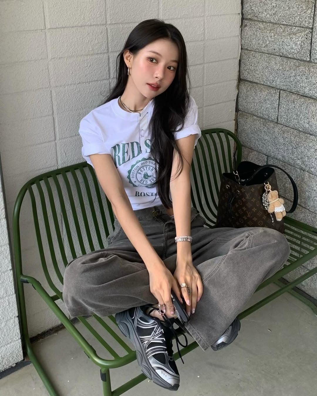 丸子頭可以說是與韓系鬢角的絕配髮型,不僅充滿俏皮感,將頭髮收得乾淨也能更突出鬢角的精緻線條。這款造型不論是休閒日常,或是像時安身穿白色小禮服的正式場合都很適合,輕鬆營造清新脫俗的氛圍。