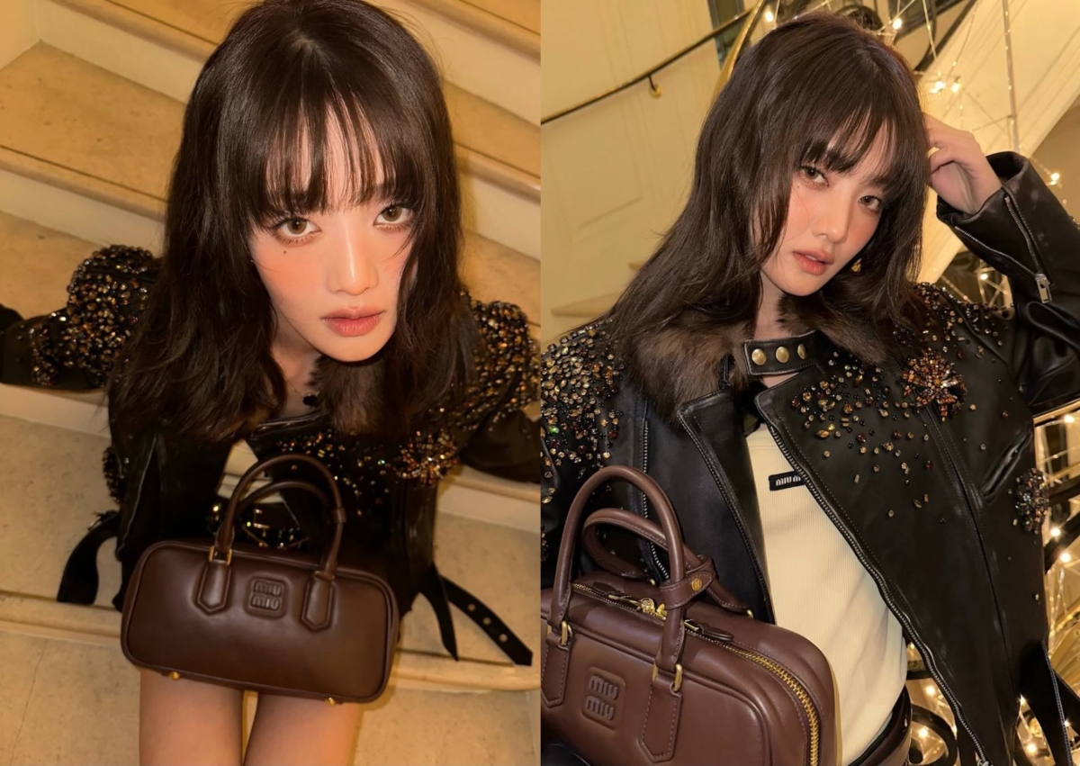 Minnie 日前在社群上曬出一身「摩卡慕斯」穿搭,身穿成套的皮革卯釘夾克和短裙,手拿 Miu Miu Arcadie 保齡球包,這顆包誕生於 Miu Miu 2023 秋冬系列,擁有俏皮復古的外觀、立體長型設計,搭載金屬雙拉鍊、手把與圓腳釘,從光滑的小牛皮到 matelassé 工藝的小羊皮面,深咖色在全身穿搭中也很突出。