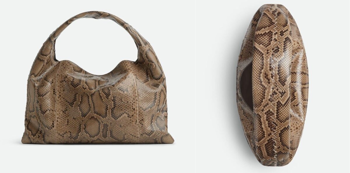 今年除了年度色為時尚趨勢之外,動物紋也將再強勢回歸,在 Bottega Veneta 的官網上發現 Hop 手袋推出以蟒蛇皮紋製成的單肩包,整顆包身廓形隨性又俐落時髦,內部設有一個拉鍊口袋,用磁鐵固定的翻蓋閉合,襯裏採用小羊皮製成,絕對是今年不能缺少的單品。