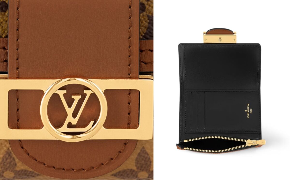 Louis Vuitton Dauphine 小型錢包顧名思義,概念源自品牌經典 Dauphine 手袋,精緻設計結合 Monogram、Monogram Reverse 帆布製作,綴有小牛皮飾邊,配備 Dauphine 標誌性磁石開合扣,內部空間充足,可輕易放紙鈔用,側面則設有拉鏈零錢格,用起來設計大膽搶眼。