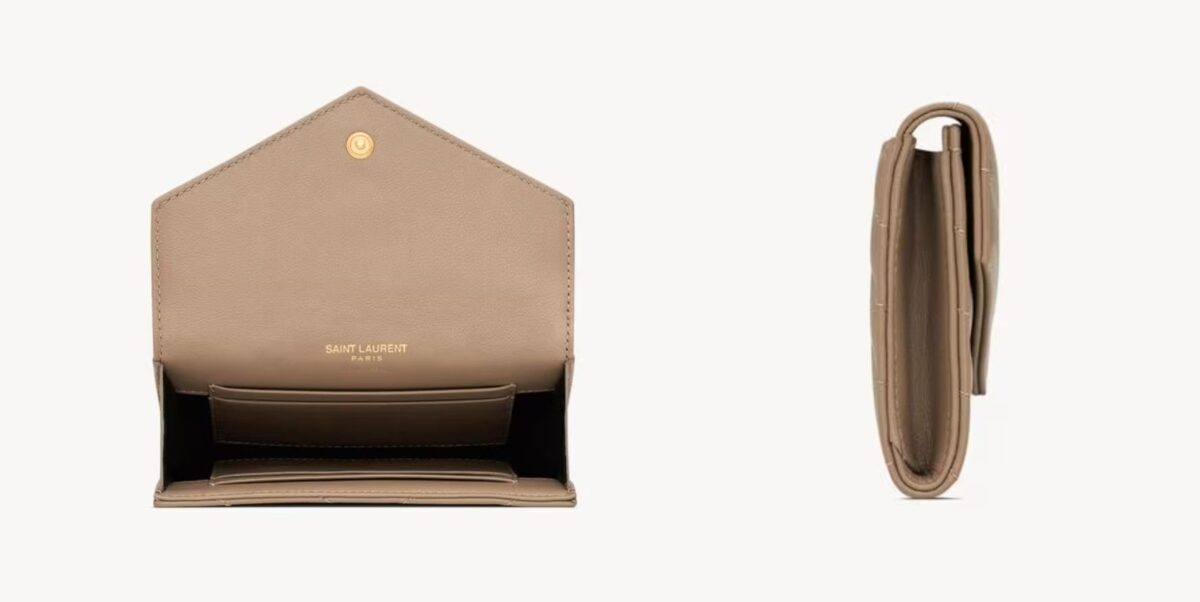2025 摩卡色「精品皮夾」05:Saint Laurent CASSANDRE MATELASSÉ 絎縫小羊皮小型信封錢包,NT$ 17,100