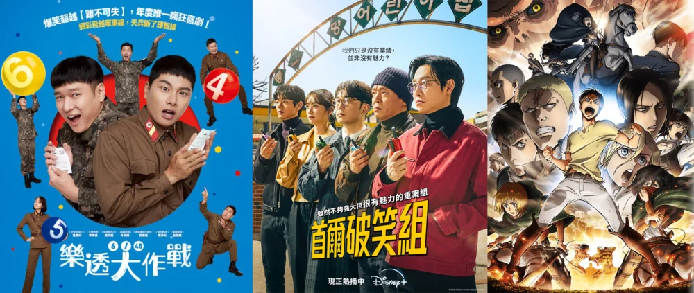 除了上述作品,還有南北韓士兵為天價獎金爆笑聯手的電影《樂透大作戰》、笑點超密集的無厘頭搜查喜劇《首爾破笑組》,或是超人氣史詩級動畫神作《進擊的巨人》等等,真的都很適合和好友們一起看一起笑,千萬不能錯過餒~