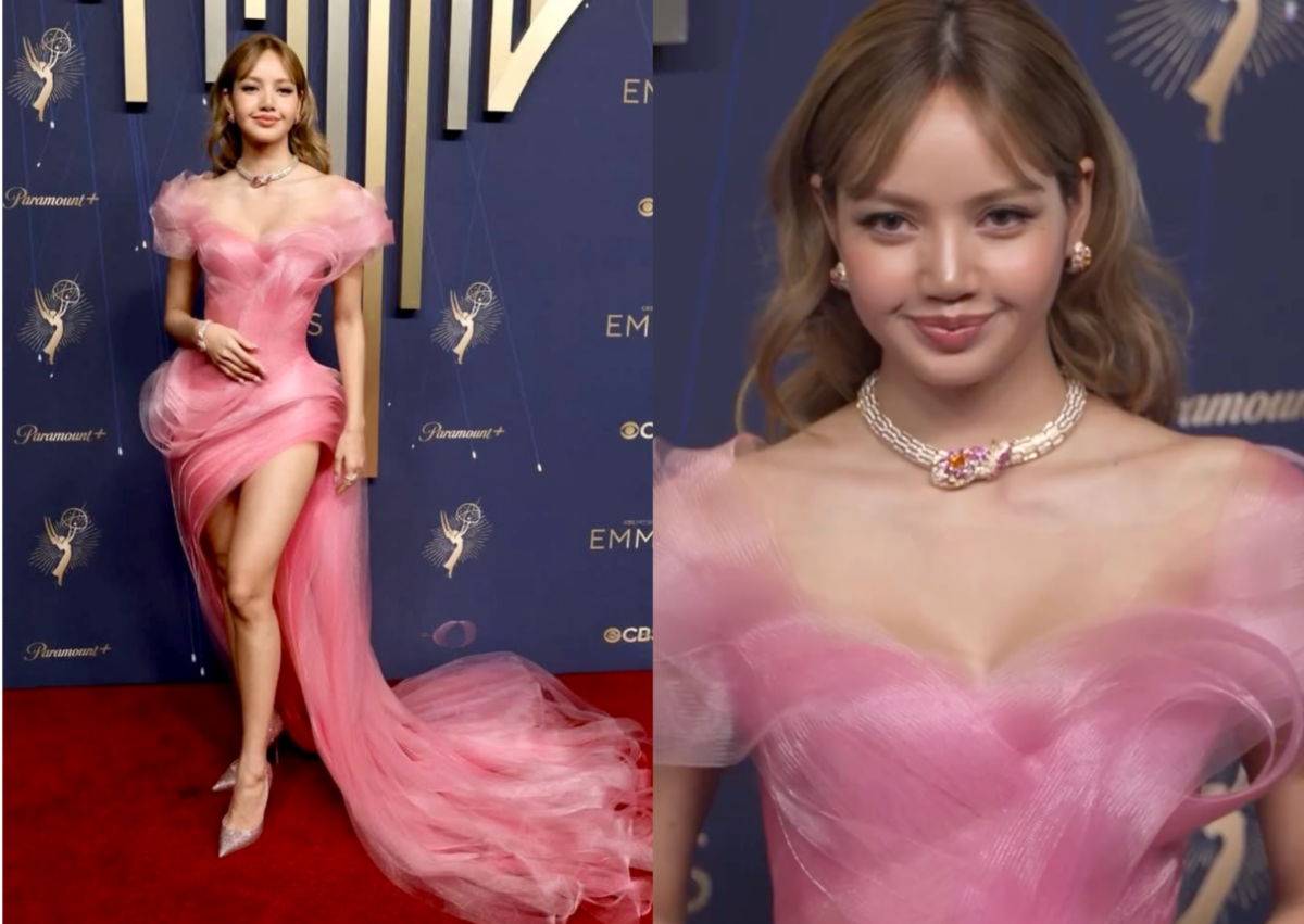 由 Lisa 參與演出的《 白蓮花大飯店 》第三季獲得了本屆 23 項提名,首度以演員身份踏上艾美獎紅毯,穿著一襲洛杉磯品牌 Lever Couture 粉色禮服亮相,以層層薄紗堆疊,打造流線形浪漫剪裁,整體線條勾勒出呼應劇集的「蓮花」意象,就像是一朵盛開的花朵,並佩戴寶格麗高級珠寶粉藍寶項鍊、耳環、戒指和手鐲,腳踩 Christian Louboutin 紅底高跟鞋,宛如人間芭比!