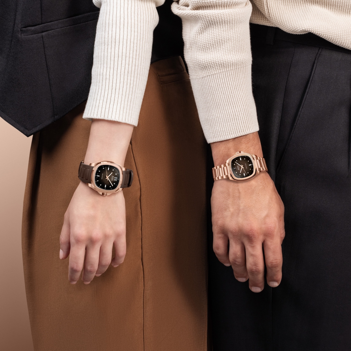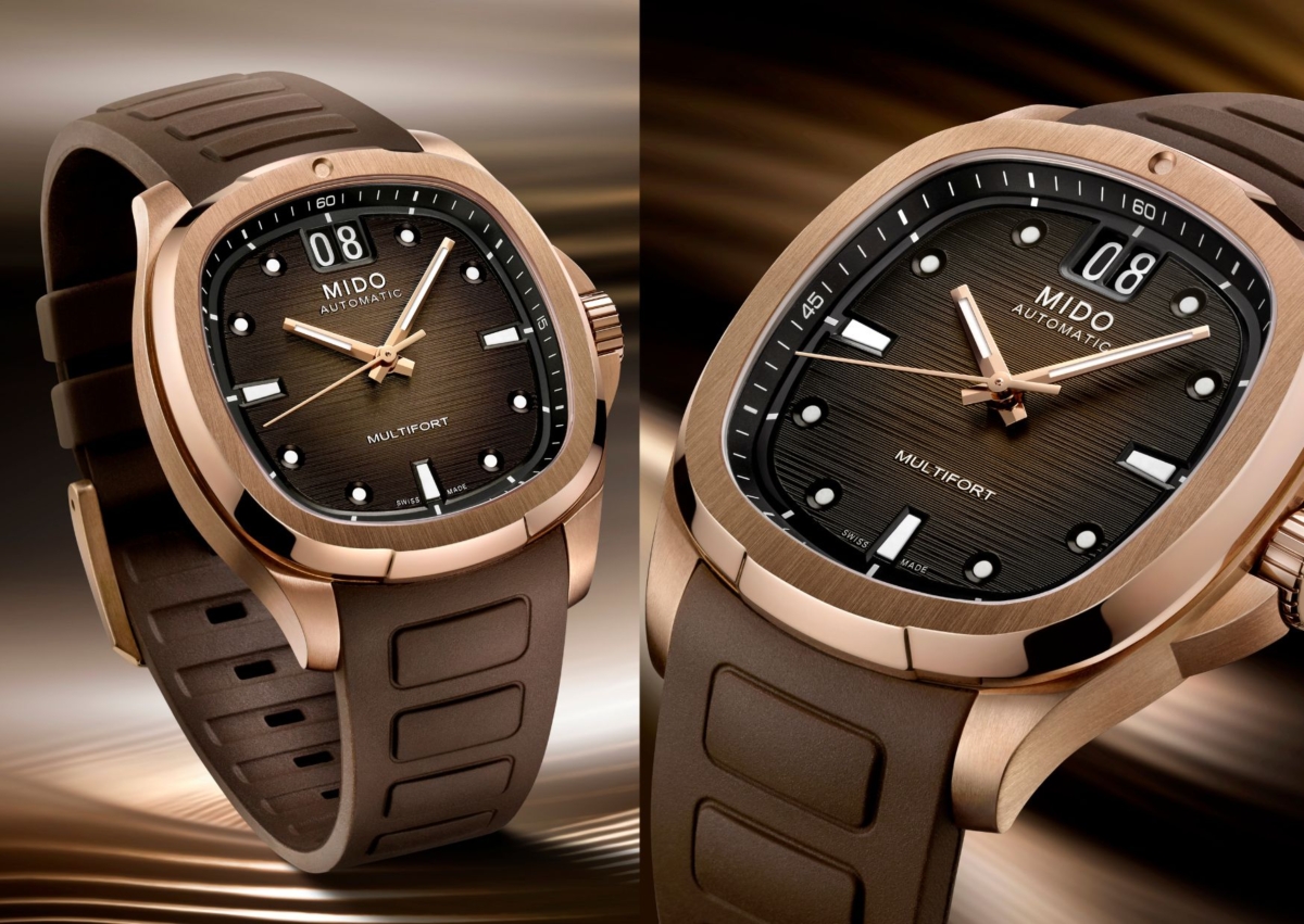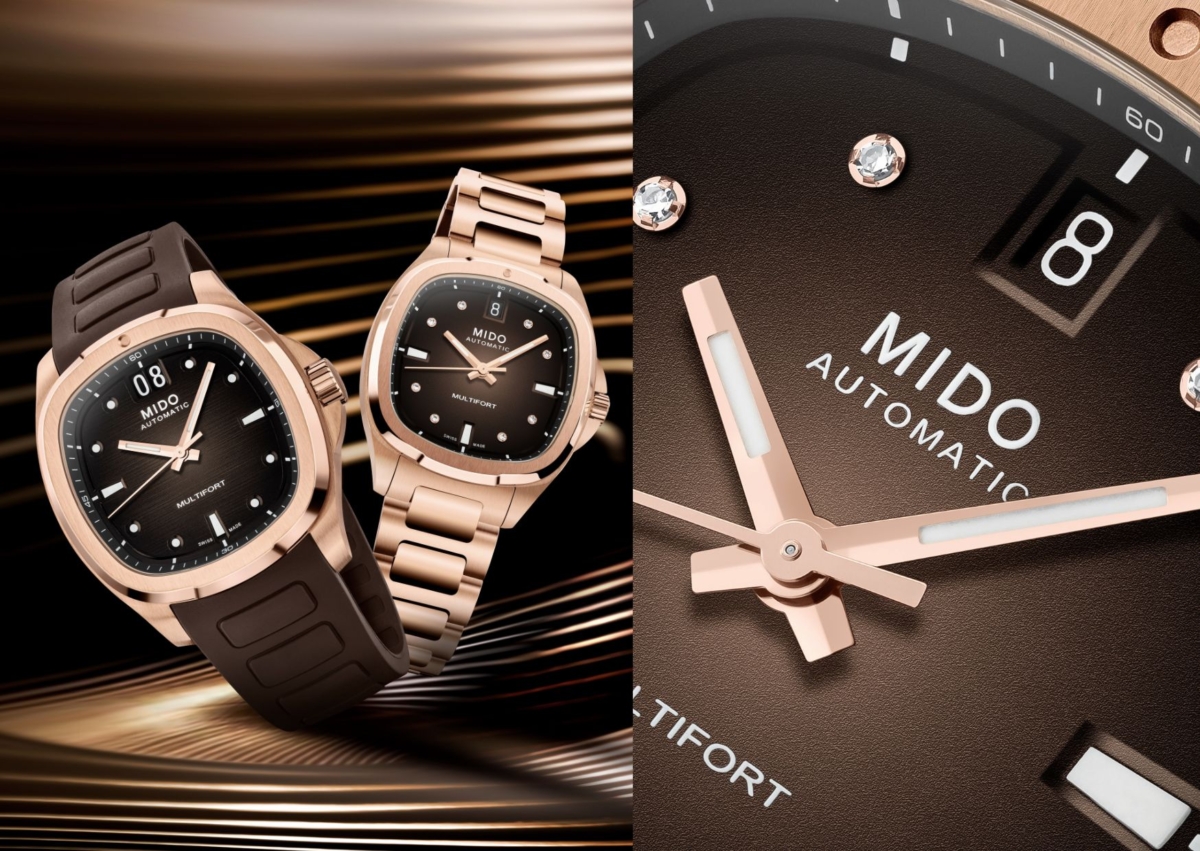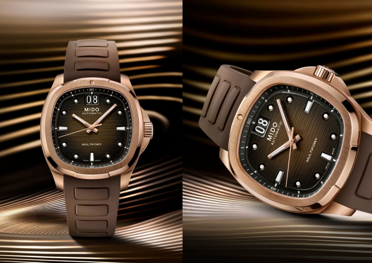 Multifort TV 的經典外型源自 MIDO 自 1918 年以來的豐富傳承,近似方形的錶殼,搭配圓角設計,讓人聯想到復古電視機的造型,並融合現代感與懷舊氣息,MIDO 早在過就曾推出過這獨特設計,並於 2023 年重新詮釋並推出新款式,立即獲得市場熱烈回響,風格強烈且帶有運動感,特別是玫瑰金與巧克力色調的經典搭配,再加上 12 點鐘位置的大日期窗,完美呈現出 MIDO 的獨特身份。