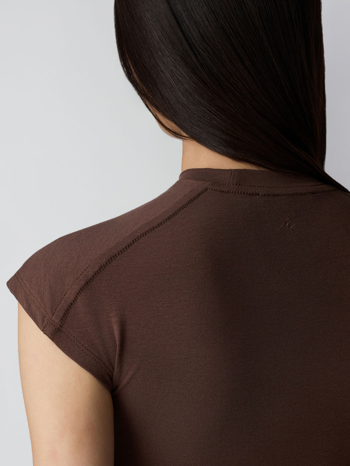 春夏衣櫥裡怎能少得了一件百搭的 Tee,本次春季系列推出這款連袖短版 Tee,面料薄軟有彈性、親膚舒適,合身短版凸顯出腰腹線條,小露腹肌超性感,採用連袖版型,讓穿著著無肩寬限制,共推出三色黑色、白色與榛果棕,包色都沒問題!