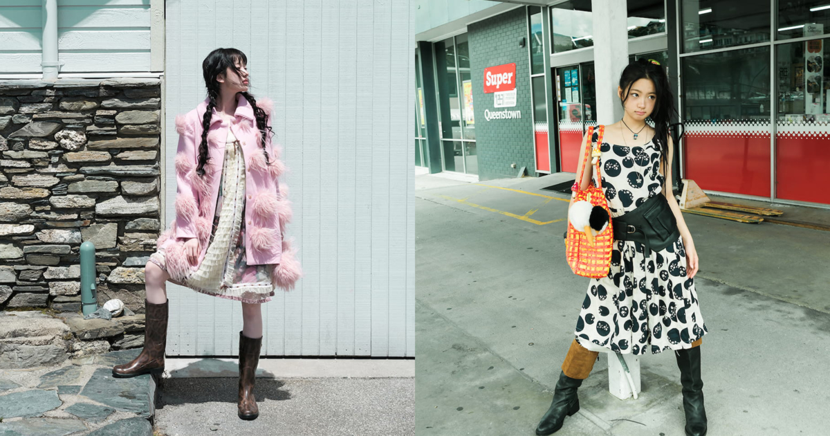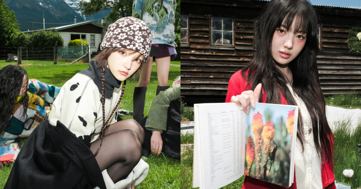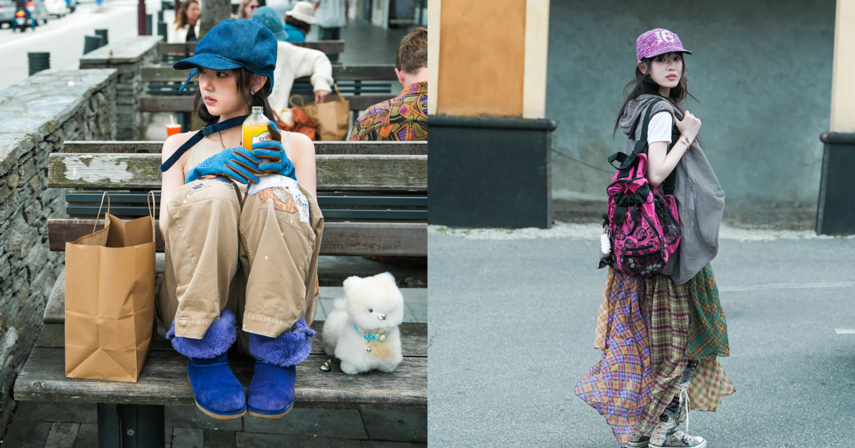 在瑞士街頭拍攝的幾組照片中,成員們透過不規則的配色、寬鬆與合身的對比、誇張配件,將復古剪裁與街頭元素結合,打造出一種率性但有層次感的時尚態度,如同照片中兩套穿搭既保有復古元素的柔美感,又帶有街頭風的隨性不羈,創造出一種個性十足又富有層次的時尚風格!