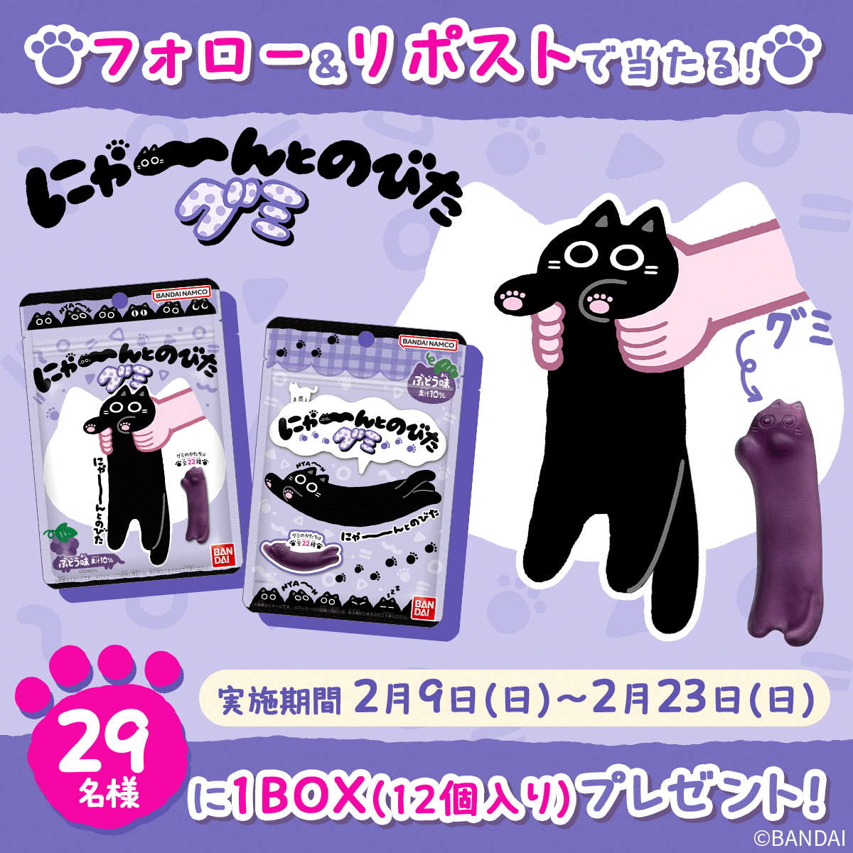 明天就是貓貓的重要節日!日本為了紀念與人類貓貓擁有和平共處,在1987年特別設立了「貓之日」!超級可愛的節日這天,許多商家都會推出一系列貓貓商品高活動,而萬代當然也有推出「拉長貓咪軟糖」~超多種賣萌姿勢讓大家好捨不得吃!