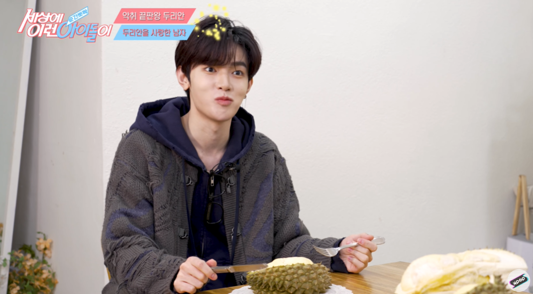 韓國人氣男團ZEROBASEONE(ZB1)的成員章昊是粉絲之間認證的「榴槤愛好者」 ,經常表達自己對榴槤的喜愛之外,還曾經在直播中獨自吃一大顆榴槤、製作榴槤蛋糕。為了測試章昊對榴槤熱愛的程度,是不是真心愛榴槤,節目竟準備榴槤壽司、榴槤泡菜等等千奇百怪的榴槤美食讓他品嚐,超荒謬的企劃讓網友笑翻:「瘋了吧哈哈哈」。