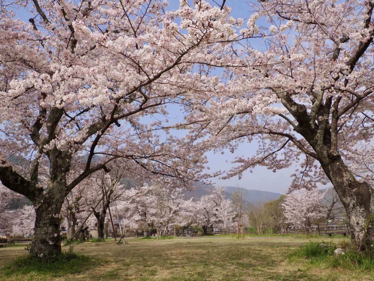 過了渡月橋就是另一個知名賞櫻景點「嵐山公園中之島地區」,位於桂川中洲的嵐山公園種滿了大量的櫻花樹,當櫻花盛開時景色相當之壯觀,整個區域都佈滿茂盛的櫻花,大家可以在廣大的草皮休息、野餐享受櫻花樹下的夢幻洗禮~