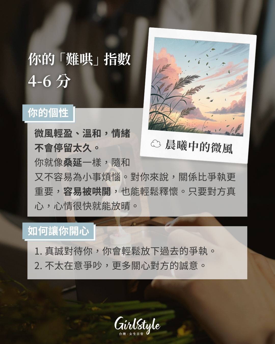 看完白敬亭、章若楠Netflix陸劇《難哄》,想知道你的「難哄」指數有多高嗎?這款心理測驗將揭曉你的內心世界!測驗分析你的個性特質,看桑延是否能成功哄得你開心!快來測驗,探索你的真實情感,看看誰才是真正的「難哄」達人!