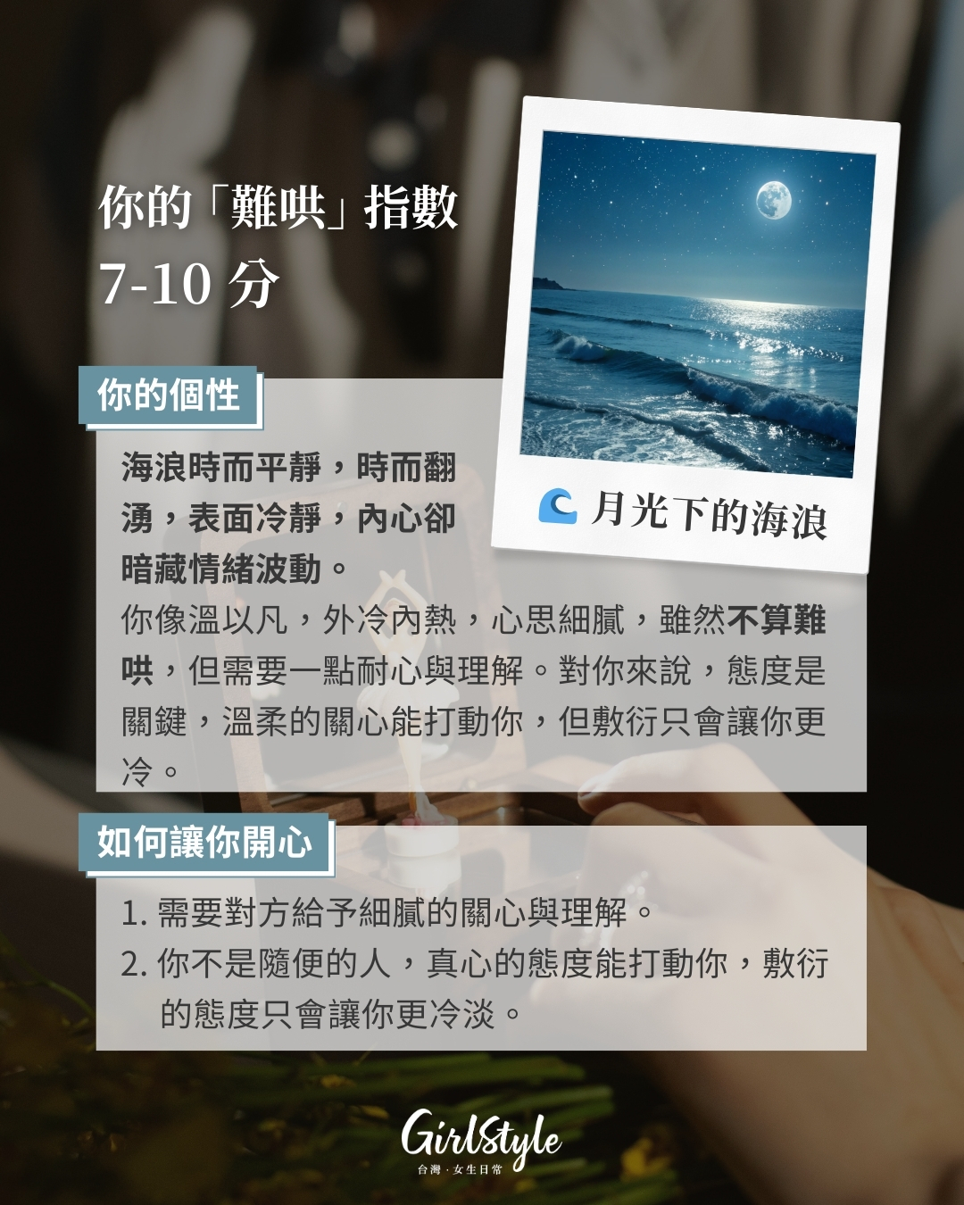 2. 你不是隨便的人,真心的態度能打動你,敷衍的態度只會讓你更冷淡。