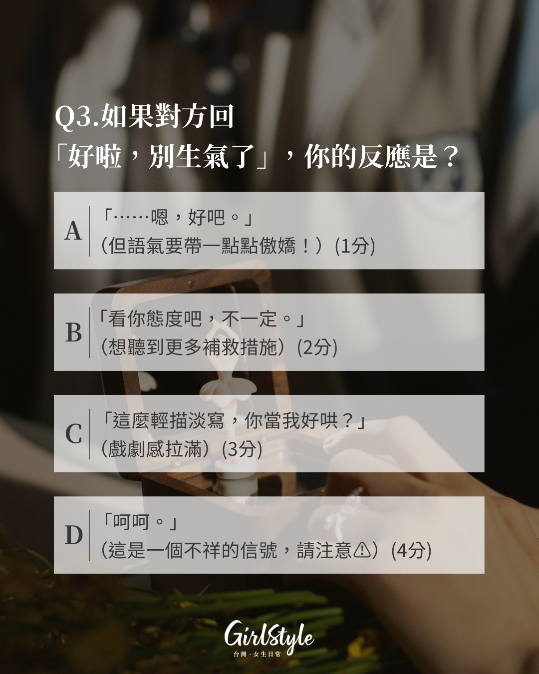 Q3.如果對方回「好啦,別生氣了」 ,你的反應是?