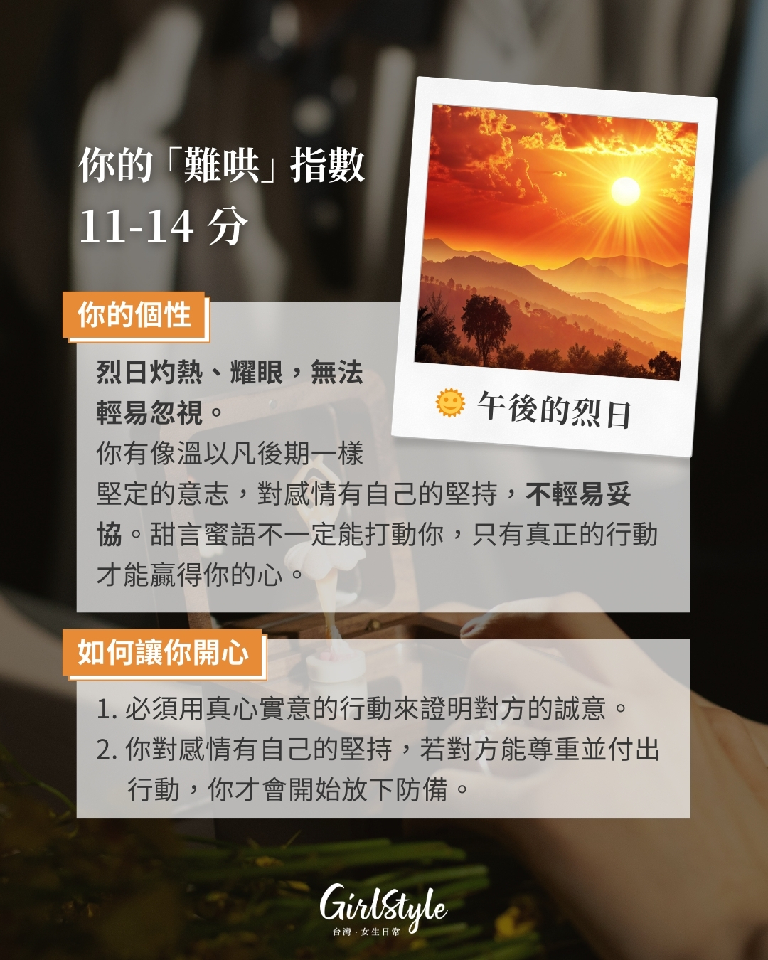 2. 你對感情有自己的堅持,若對方能尊重並付出行動,你才會開始放下防備。