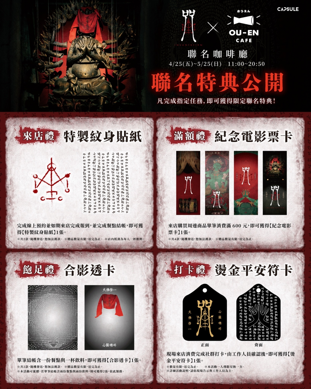 台灣恐怖片「咒 x OU-EN CAFE聯名咖啡廳」7款超詭異餐點、11種大黑佛母特典周邊一次看