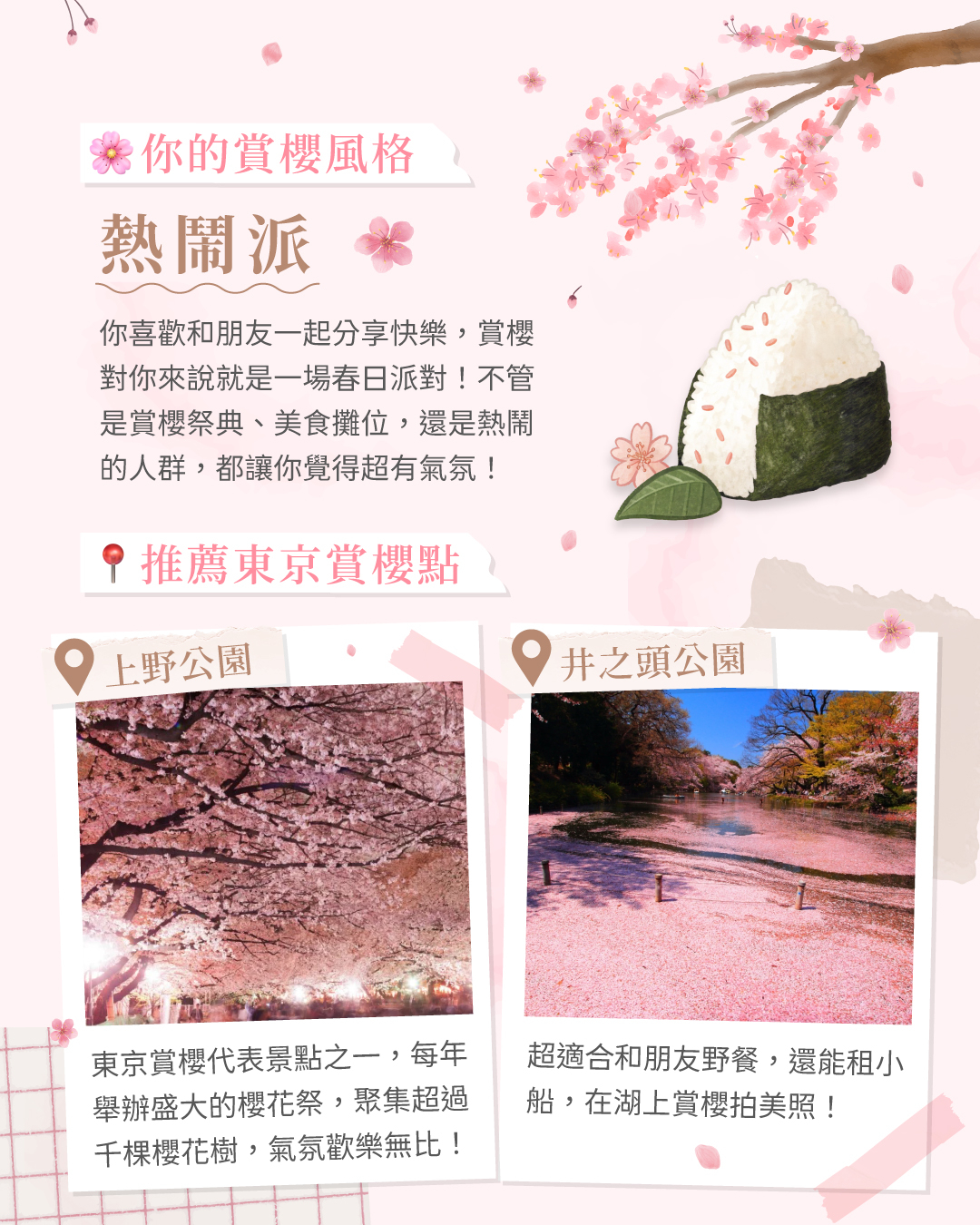 你喜歡和朋友一起分享快樂,賞櫻對你來說就是一場春日派對!