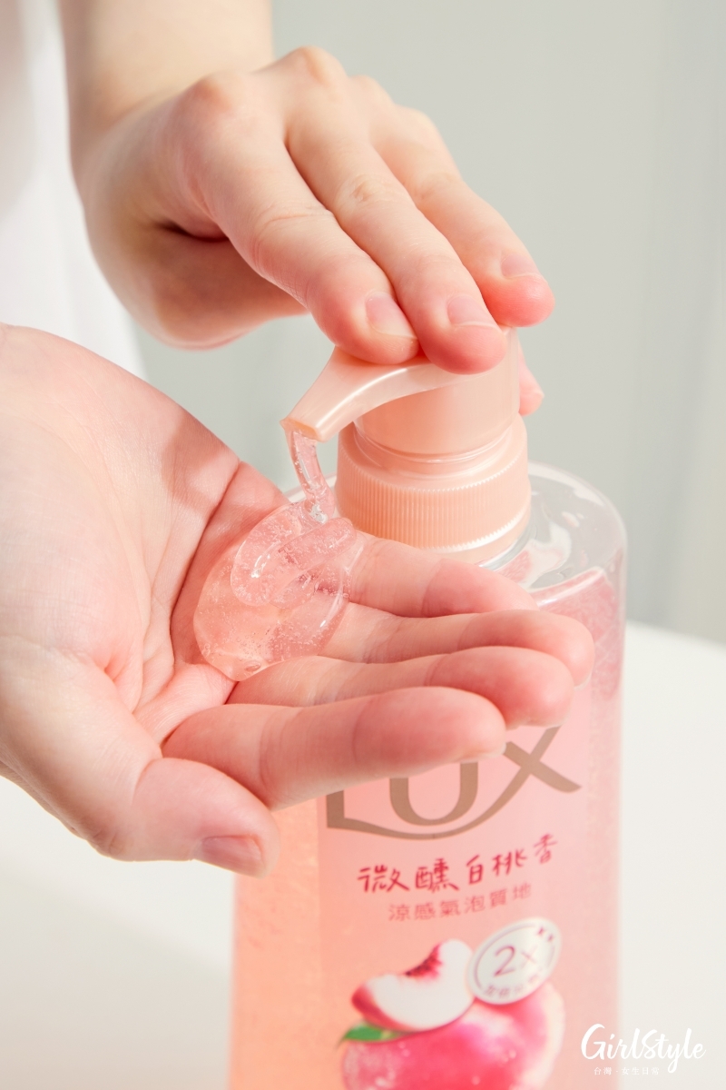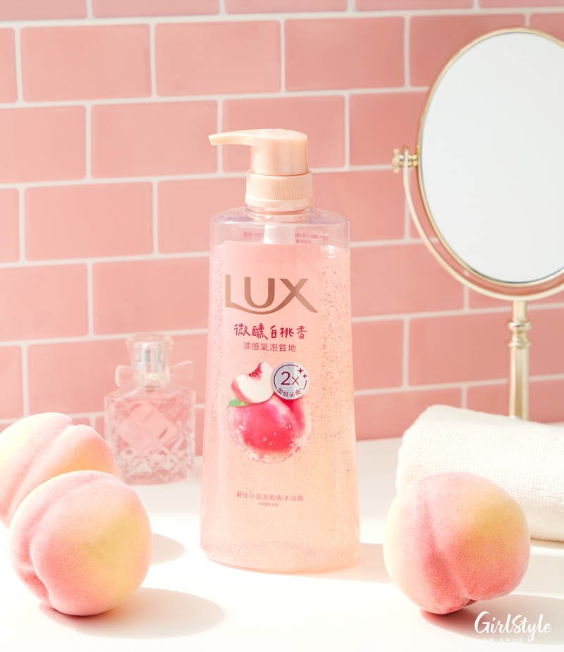 想要洗完澡就像行走的人間水蜜桃般帶著清新甜美香氣,且清爽不黏膩?那LUX小氣泡爽膚沐浴露這款微醺白桃香超適合妳!