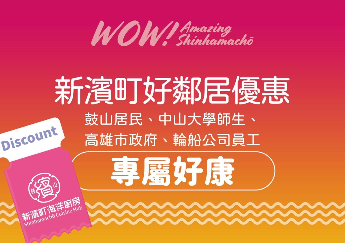 歡慶高雄鼓山新濱町海洋廚房3/22盛大開幕,3/27起推出「新濱町好鄰居優惠」活動,鼓山居民、中山大學師生、高雄市政府、輪船公司員工以及特約企業…,都能享有專屬好康:至「日乃屋」店家消費凡點主餐,贈黃金煎蛋1份;「JAPAN燒烤」開放全品項飲品暢飲(酒類+軟性飲料) 原價NT$599元,優惠NT$499元;「札幌一幻拉麵」凡點主餐即贈飲料1瓶(可樂/可爾必思2選一)…,還有一系列超值折扣等你來體驗!