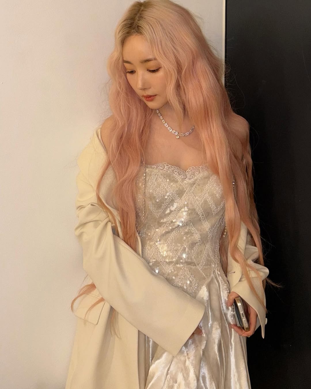 NMIXX成員Sullyoon就時常以奶茶髮色亮相,搭配俐落西裝、優雅全白穿搭都完美呈現出不同風格的時髦感。