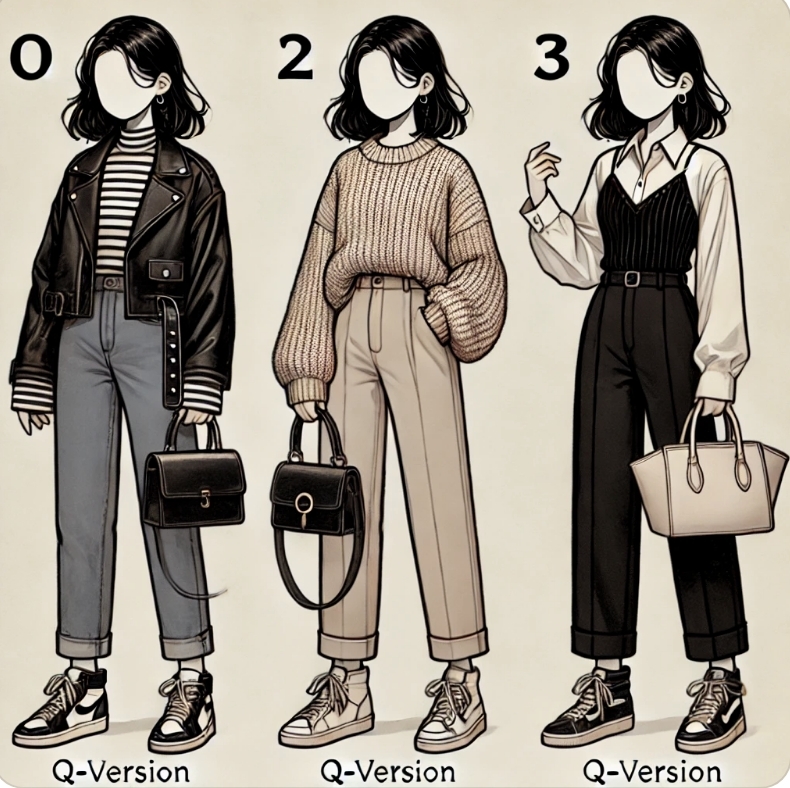 「提供個人 Instagram 個人頁面九宮格截圖,根據排版、色調和氣質等視覺元素,分析出風格觀察和三套適合的穿搭建議,並且生成 Q 版圖片。」