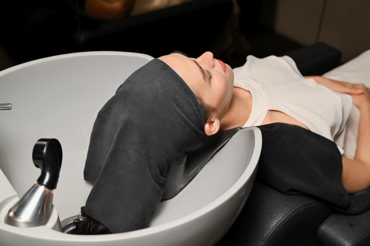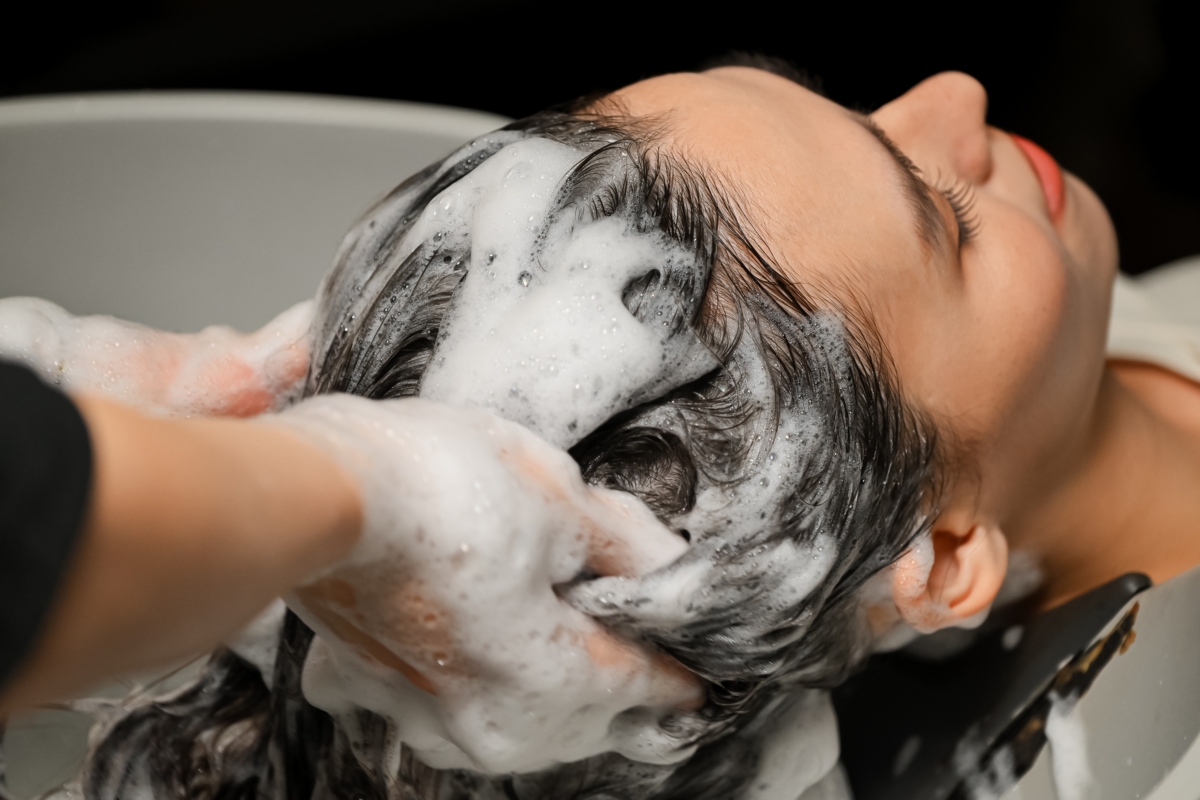 選擇氨基酸系或弱酸性的洗髮精,能夠溫和清潔、不刺激頭皮,也不會進一步傷害髮絲結構。建議搭配溫水沖洗,過熱的水溫會打開毛鱗片,讓水分更容易流失。