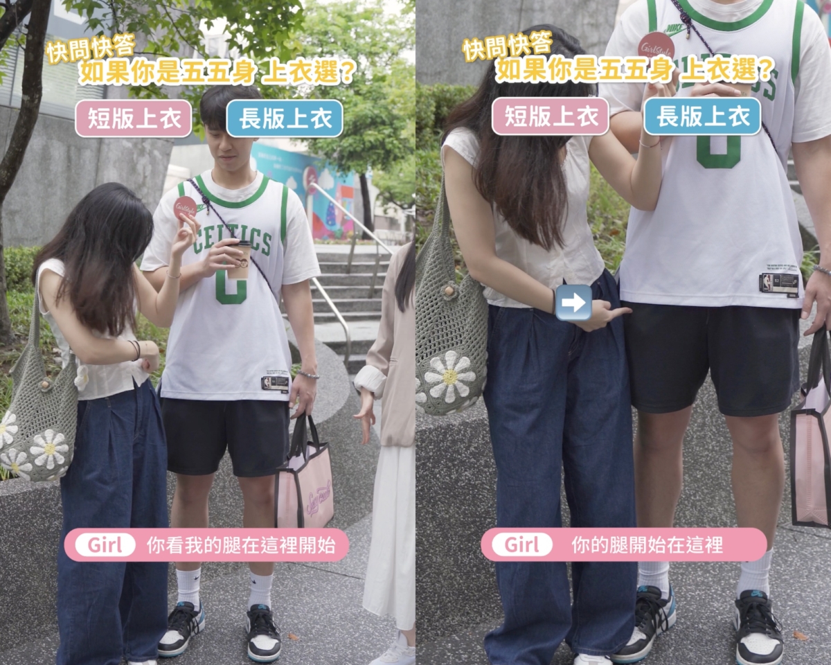 有些男生覺得當女生其實有很多優點,像是能穿很多漂亮的衣服,或是做出如魔法般的超強化妝術!所以我們這次還特別準備了女生穿搭的快問快答,看看大家到底能不能拿到變成女生的入場券!結果大家對於腳踝粗要穿粗鞋幾乎都答對了,但是對於顯比例的五五身要穿短版,很多男生就宣告失敗~女友現場還示範比例之差!