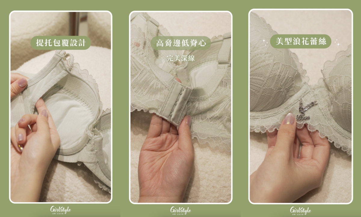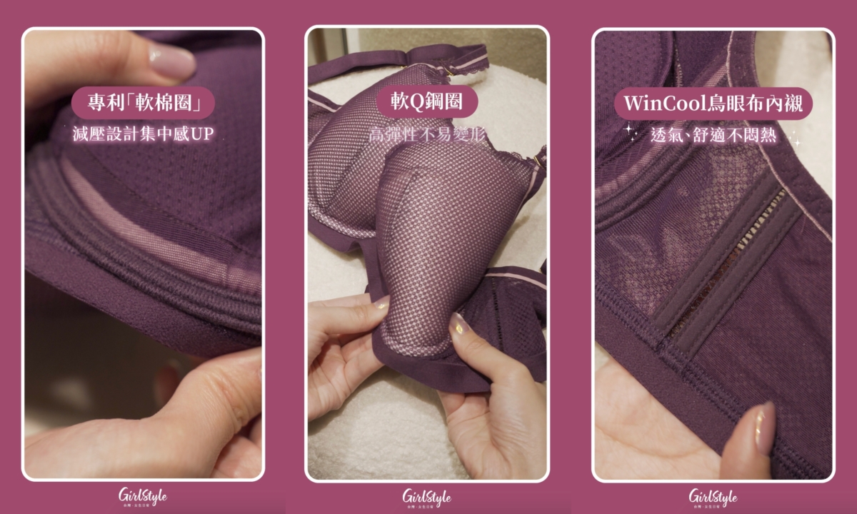 不只全系列的顏色都超可愛~「夢幻啵提」也藏了很多魔鬼小細節哦! 絲棉立體剪接,加上側托片設計,可以讓胸型更加立體集中,而且還有高脅邊低脊心和三排三鉤,包覆力非常足夠,不只能夠完美呈現深V胸線,還能夠讓胸型更加圓潤有型真的拜託要收~