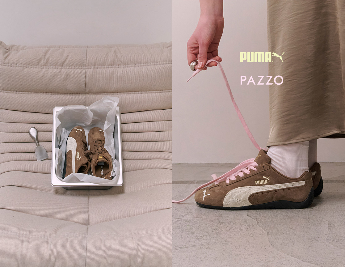台灣人氣時尚品牌 PAZZO 首次攜手 PUMA,以今年爆款 Rosé 同款 Speedcat OG 賽車運動鞋為廓形,選擇新色摩卡棕迎接全新季度,打造 2025 最新可麗露 Lulicore 風格!鞋款設計靈感來自賽車鞋,融合了速度與性能的理念,採用橡膠鞋底搭配流線剪裁,本次選品合作以話題摩卡慕斯搭配 PAZZO 草莓粉鞋帶,