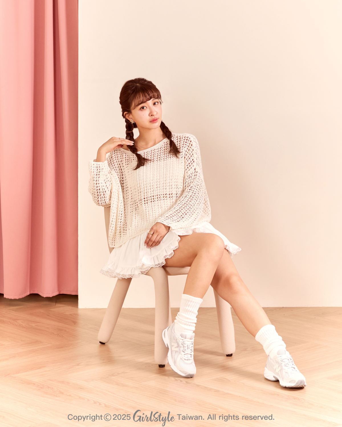 這次薛妞妞以柔軟的鏤空針織衫搭配蕾絲短裙,再踩上個性感十足的 740,巧妙地在甜美少女感中注入俐落態度,完美詮釋「千金運動風」的全新風格!整體造型在甜酷之間拿捏得恰到好處,細節層次分明,不僅營造出優雅氣息,同時兼具日常穿搭的舒適度與實穿性。