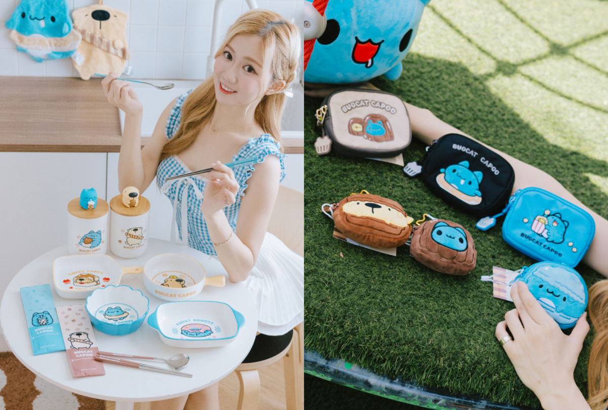 桌系列同樣以甜點主題設計,咖波與狗狗大喝珍珠奶茶、手持捲心酥餅乾在「不鏽鋼餐具」、「公仔陶瓷收納罐」、「造型陶瓷烤盤」上增添食慾,更貼近角色個性化身獵奇「不鏽鋼胖胖壺」討喜造型。