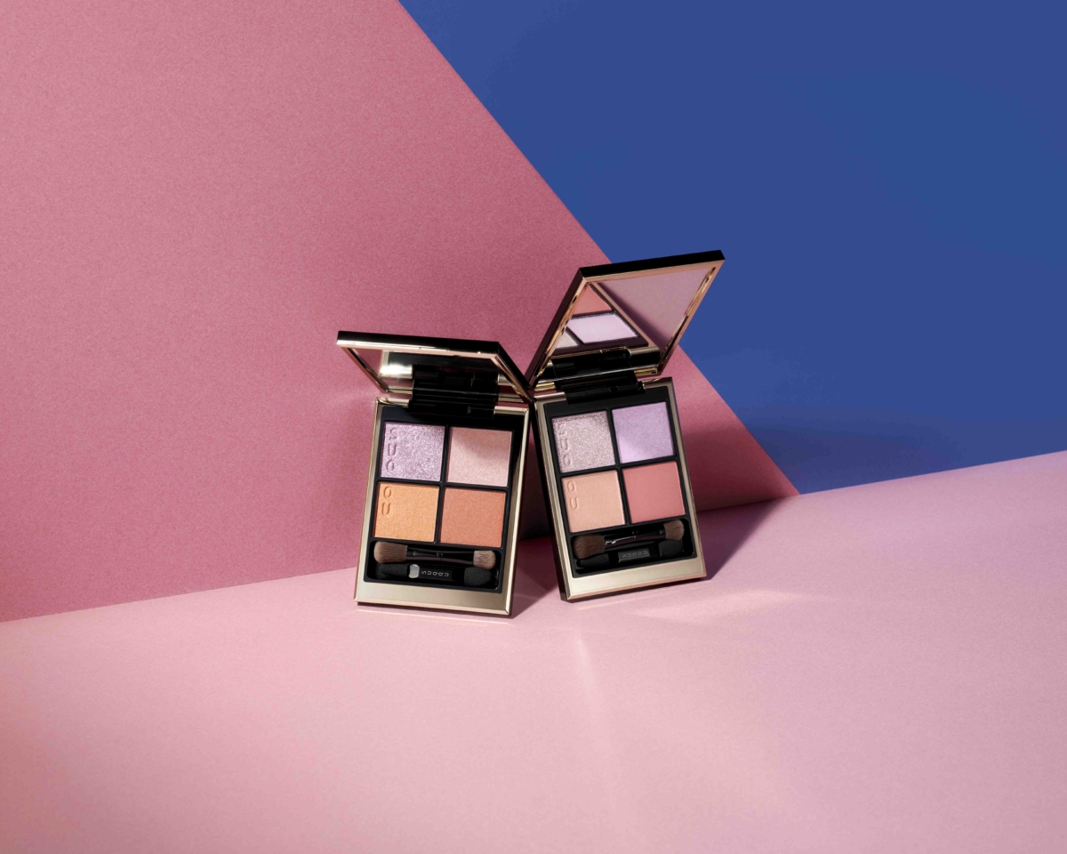兩款「SUQQU 晶采盈緻眼彩盤」皆以低飽和紫色與光影對比呈現出恰到好處的低飽合眼妝。