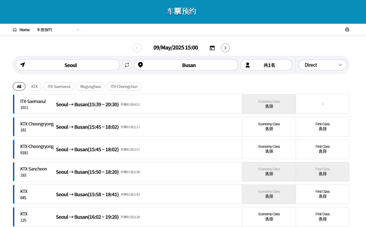 從首爾到釜山的KTX車程約為2小時15分至2小時45分,依所選班次略有不同。
