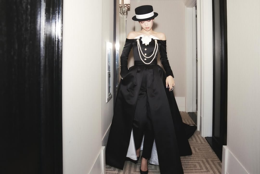 第三次登上Met Gala 紅毯的 Jennie穿上 Chanel 1987 年珍藏設計款,呼應本屆的致敬黑人文化主題,正裝輪廓延伸優雅緞面長裙,在裙襬中更藏著帥氣的褲裝搭配,整體既優雅又不失率性,這次又是100%人間香奈兒啊!編輯最喜歡的是在造型中加入了雙色紳士帽和超可愛的蝴蝶結髮型,將香奈兒的元素極致的展現。
