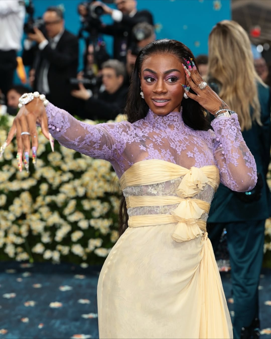 與多次合作的美甲師Angie Aguirre再度以滿分浮誇造型美甲吸引觀眾眼球,這次Sha’Carri Richardson不再是賽道上獨特風景,站上Met Gala紅毯宛如春日花仙子實現「所有人都可以勇敢做自己」的想法。