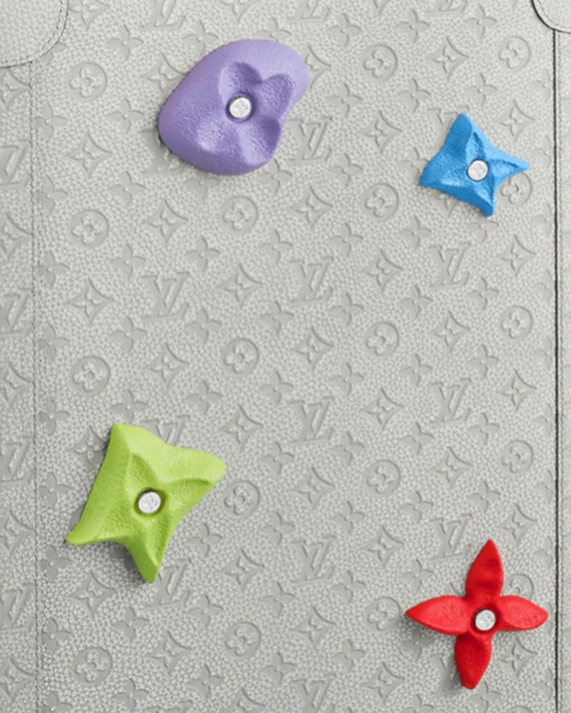 以Virgil 在 LV 的最後一個系列"climbing"包包系列為設計靈感,並將配色使用了紅色、黑色、銀色及白色相互搭配,搶眼又細節滿滿,也更呼應了Lisa這次的整體服裝風格。