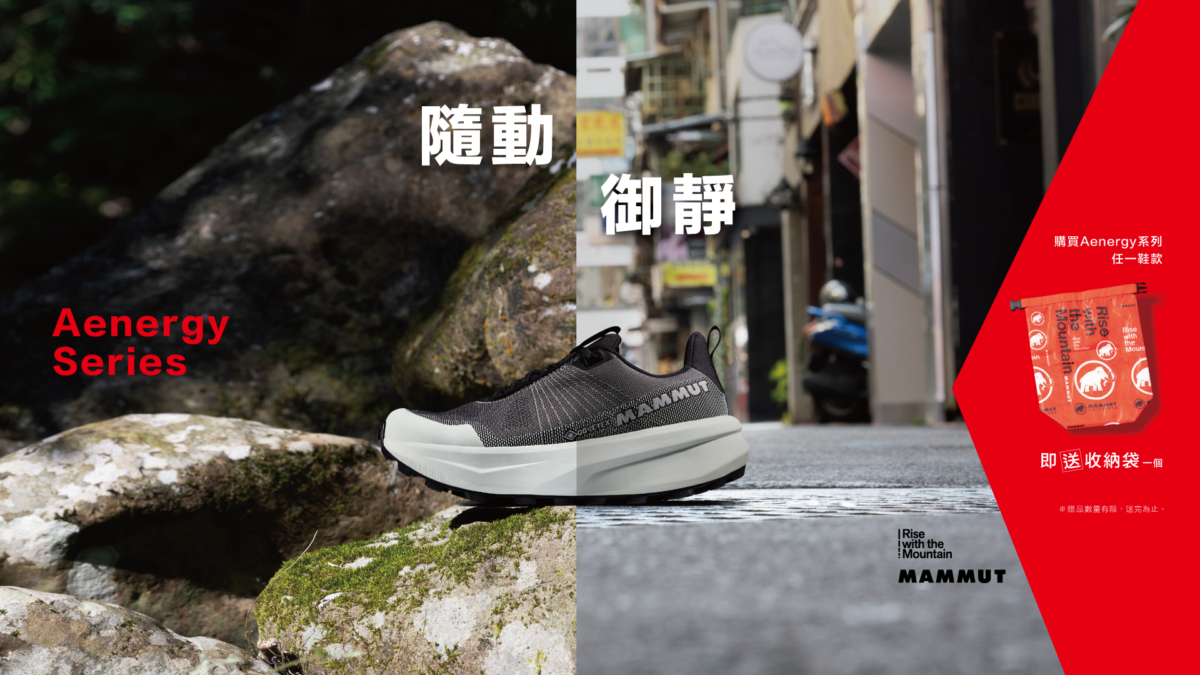 Outdoor 型人注意!瑞士Mammut(長毛象)繼Ducan系列鞋款大獲好評後,於2025春夏推出全新 Aenergy 系列。該系列共分為 HIKE、MTN、ULTRA 三款鞋型,針對不同使用情境量身打造。以時尚厚底設計結合Mammut專業鞋底技術,讓穿搭與足部保護可以兼得,無論在街頭還是戶外,都能輕鬆駕馭。這不是僅為山林而生的鞋款,而是專為生活在城市與戶外之間的你而設計。為慶祝全新鞋款登場,Mammut 特別推出限時贈品活動:2025年5月2日起凡購買任一 Aenergy 系列鞋款,即可獲得「Mammut 輕量收納袋」乙個(數量有限,送完為止)。更多活動詳情,請洽 Mammut 台灣官網www.mammut.tw或全台授權通路。