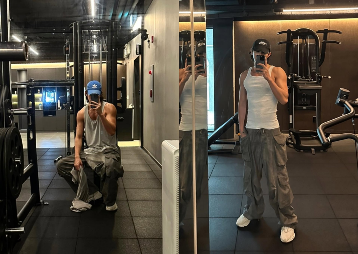除了正裝穿搭之外,李洙赫最常出現的就是健身時的對鏡自拍了!李洙赫的健身穿搭不僅實用,還超有型,不單單只是一件單品的穿搭,反而將重點放在下半身的搭配,選擇帶有層次、份量感的運動褲或工裝褲,配上一雙設計感強的運動鞋,上身則是簡單的素色背心,輕鬆搭出運動風的時髦感,出健身房後套上一件造型感外套就能出門逛街。