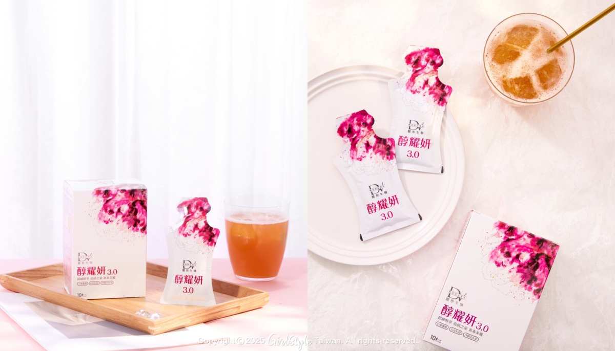 裡面還加入了葡萄籽、透白原萃薏仁、神經醯胺、石榴多酚、黃金果沙棘,從保濕、抗老到提亮膚色一包搞定,早上空腹喝最有感~有時候週末和家人朋友聚會、另一半約會想來點大餐,還可以搭配氣泡飲特調解膩,口感清爽不甜膩,根本是「保養界的氣泡飲料」,邊養顏邊滿足口腹之慾,超級可以!