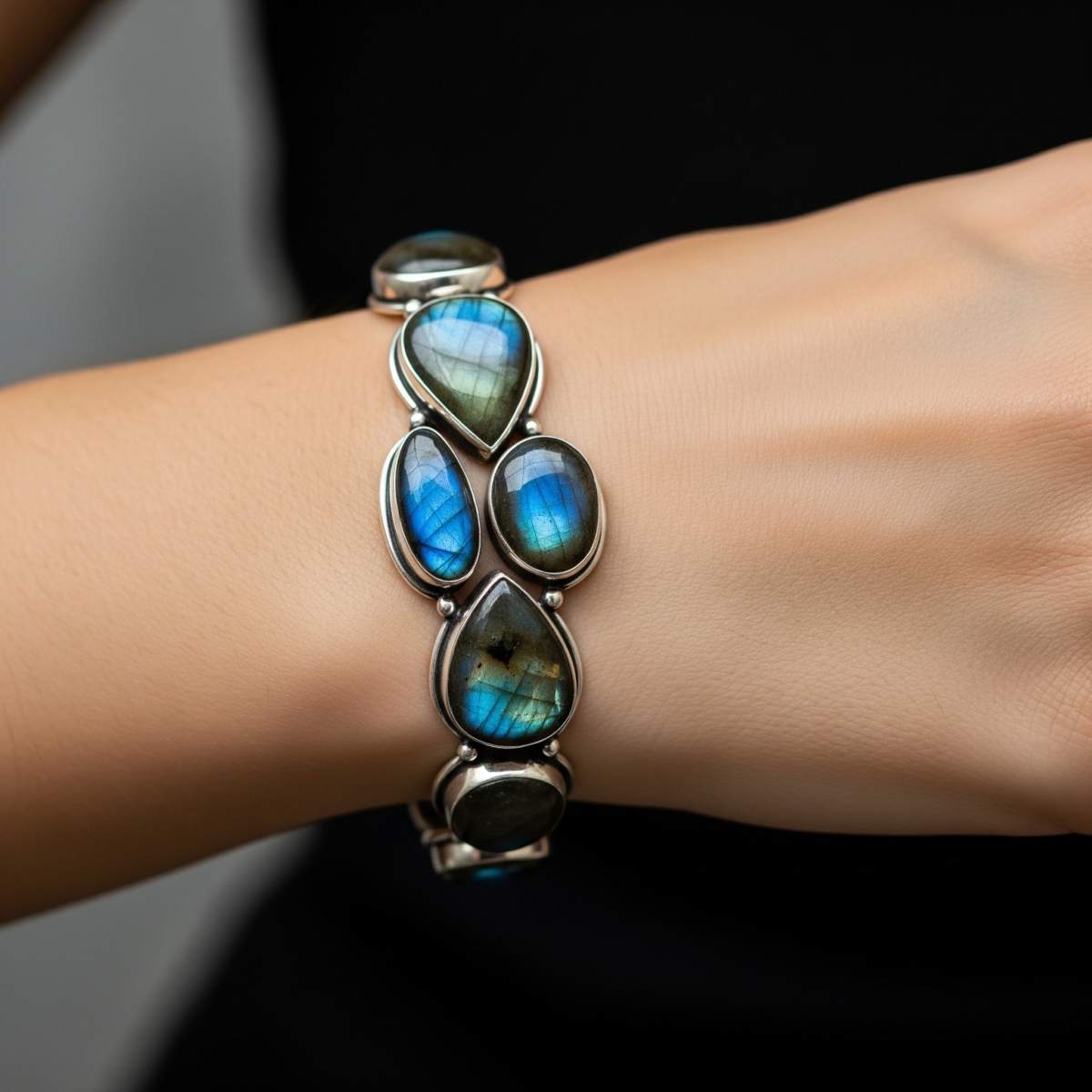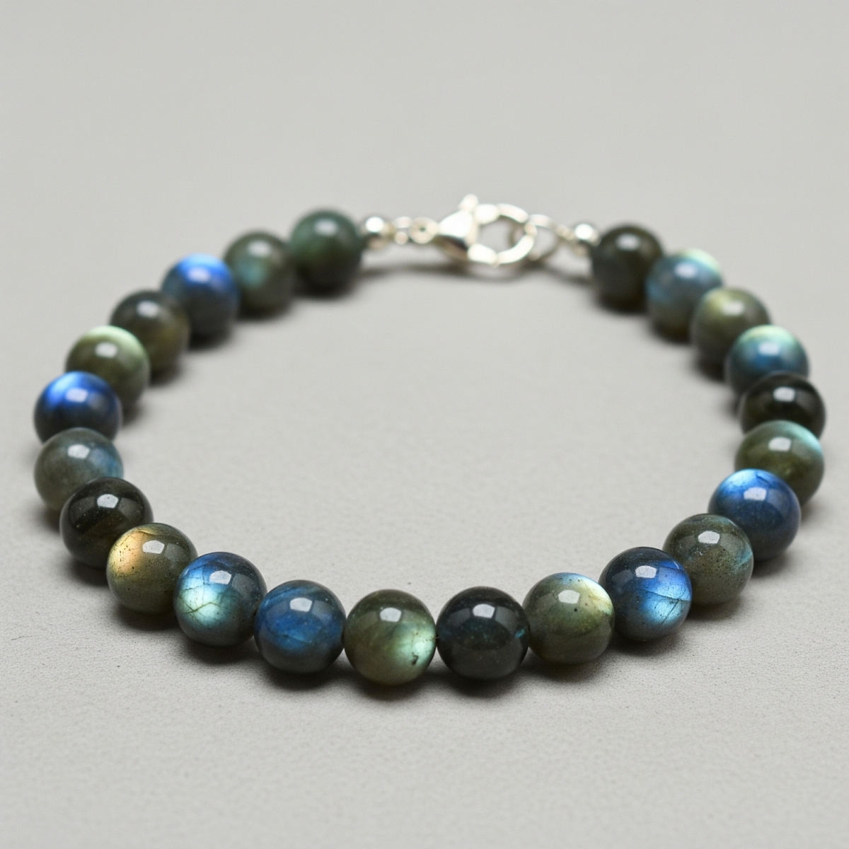 在能量學中,左手被視為「接收之手」。將拉長石戴在左手能幫助吸收正面能量、靈感與直覺力量,適合在創作、冥想、學習時使用。