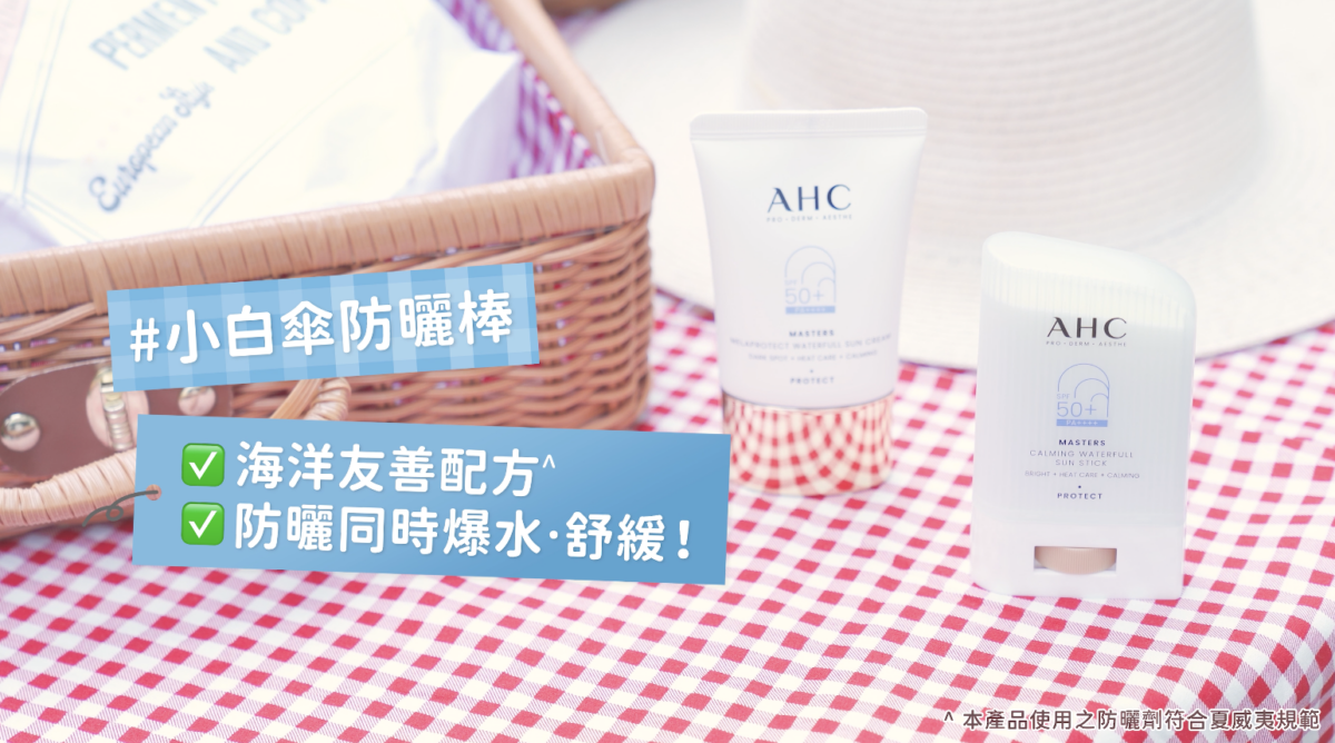 【9重全護爆水舒緩防曬棒】AHC #小白傘防曬棒 能高效防護、方便補擦、舒緩降溫,根本是戶外活動防曬神品!輕鬆一抹不黏手、不卡妝,簡直是野餐、水域、戶外運動的最佳拍檔!