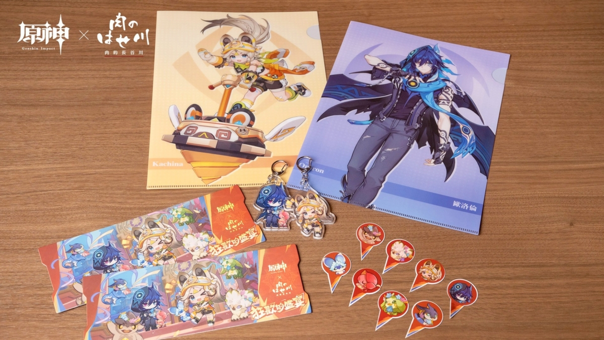 114/6/1起,玩家也可在肉的長谷川店鋪加價購《原神》「狂歡的盛宴」系列限量周邊;讓經典角色歐洛倫、卡齊娜點綴你的生活圈~商品包含壓克力鑰匙圈(共兩款,180元/款)、資料夾(共兩款,100元/款),皆有兩款人氣角色可收集,數量有限,售完為止,收藏控千萬別錯過!