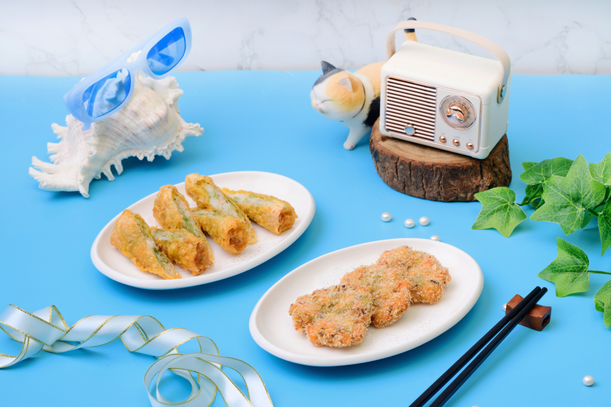 澎湖海域捕獲的小卷特別鮮甜,「海島鮮卷燙」採用最能保留原味的白灼手法,完整帶出小卷的鮮嫩甘甜,並襯上粉條,呈現外婆澎湖灣的好滋味。唰嘴的海鮮炸物也藏有驚喜,「海派花卷酥」將有澎湖綠金之稱的海菜,以未曬乾的方式保留其鮮嫩翠綠,再拌入花枝蝦漿,用腐皮包起來酥炸,外酥內鮮,是極具海派的炸物美味,另一款「蝦枝咔咔餅」使用澎湖特級花枝蝦漿製作,用料不手軟,每口都能咬到飽滿的花枝顆粒,再搭配大量蔬菜帶出清爽脆感,彷彿升級版的澎湖金錢蝦餅,吃起來十足過癮。