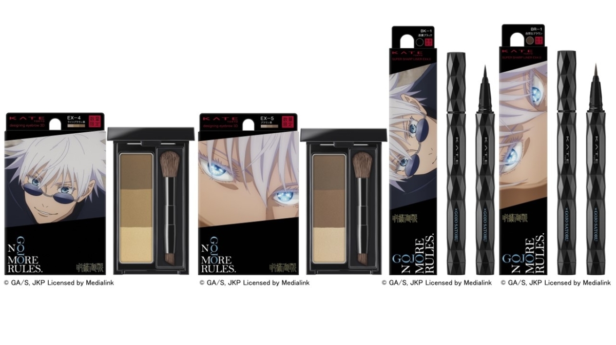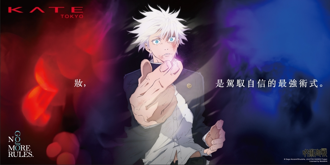自6月2日起,KATE將攜手在日本與海外皆擁有高人氣的動畫作品《咒術迴戰》展開聯名企劃。KATE一直以來致力於打破既定規則與框架,藉由極具巧思的彩妝設計,激發人們自由展現自我的渴望。此次以角色「五條悟」為主題,推出限量彩妝商品,特別融入作品中強調眼神魅力的經典畫面設計,充分體現品牌在眼妝領域的專業與創意。本次聯名更以「化妝,是駕馭自信的最強術式」為概念主軸,向全球傳遞彩妝無限可能性的品牌信念。限量聯名商品將於6月21日正式開賣,數量有限,售完為止。